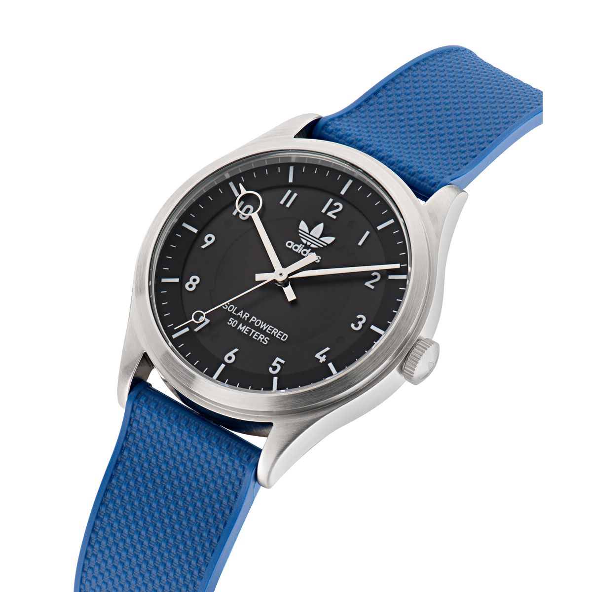 The Adidas Originals Black Dial Unisex Analog Watch combines both style and sustainability. Made with recycled stainless steel and a bio-based resin strap, this watch is a reminder to do good for the environment while looking good. Featuring a sleek silhouette and solar-powered technology, this watch is the perfect blend of fashion and functionality. Upgrade your style with this eco-conscious timepiece.