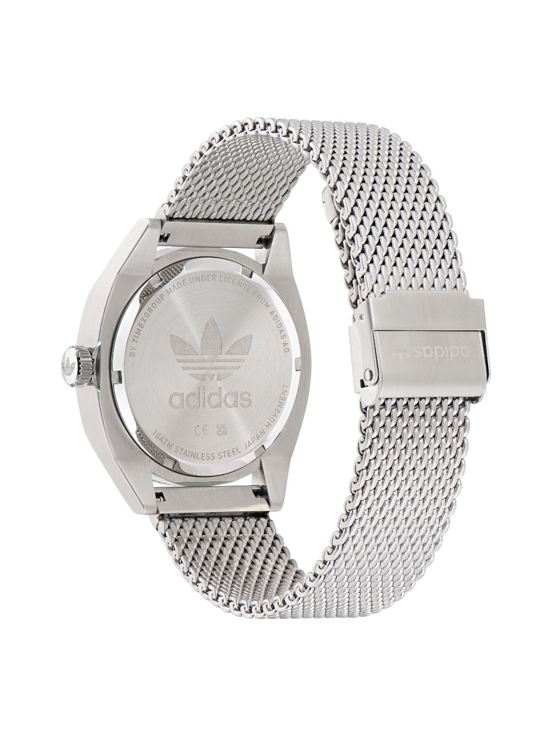 The Adidas Originals Black Dial Unisex Watch is a versatile watch ideal for casual events. This watch is both elegant and useful, including a durable SST silver tone case and mesh band, a black dial, and a black/vivid red/beam yellow top ring. This watch was built to last, with a 100-meter water resistant and a battery-powered quartz movement. It has a?á1-year warranty?á,?áwhile the mineral glass and stainless steel parts provide long-lasting performance. To keep it looking its best, use a cotton cloth to clean the dial.