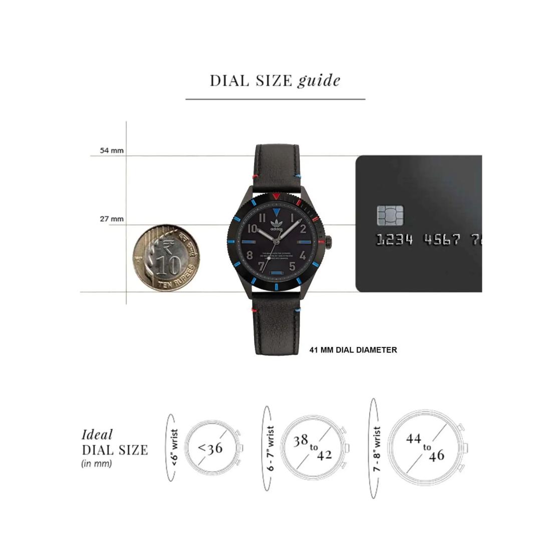 The Adidas Originals Black Dial Unisex Watch offers classic design and superior craftsmanship. This watch, with its black body and dial highlighted with Originals Blue and Vivid Red, is ideal for any casual event. Its 50M water resistance and black eco-leather strap make it both functional and fashionable. With a warranty of one year and a quartz movement powered by a battery, this watch is a must-have for every watch lover. To keep it looking its best, use a cotton cloth to clean the dial.