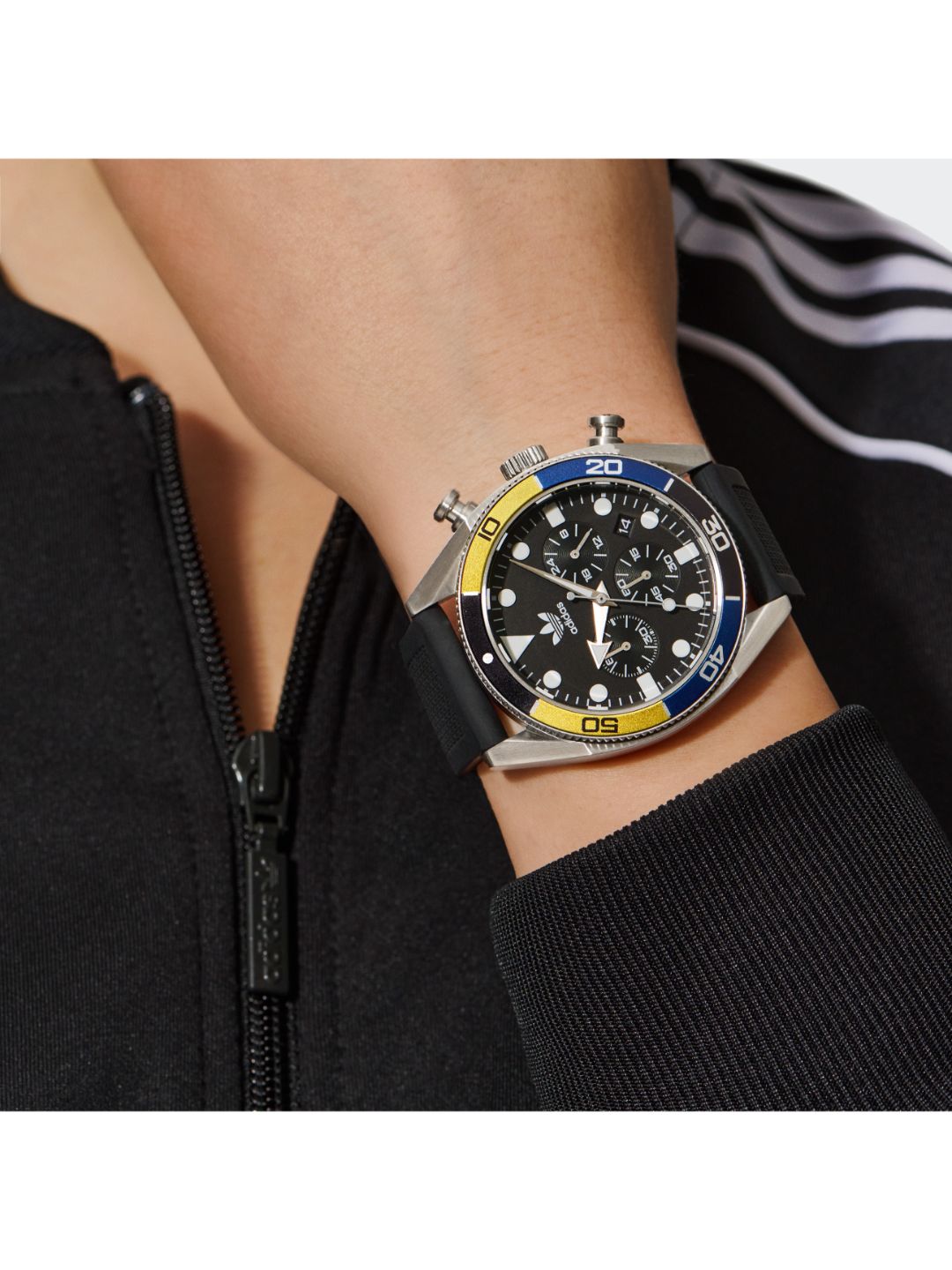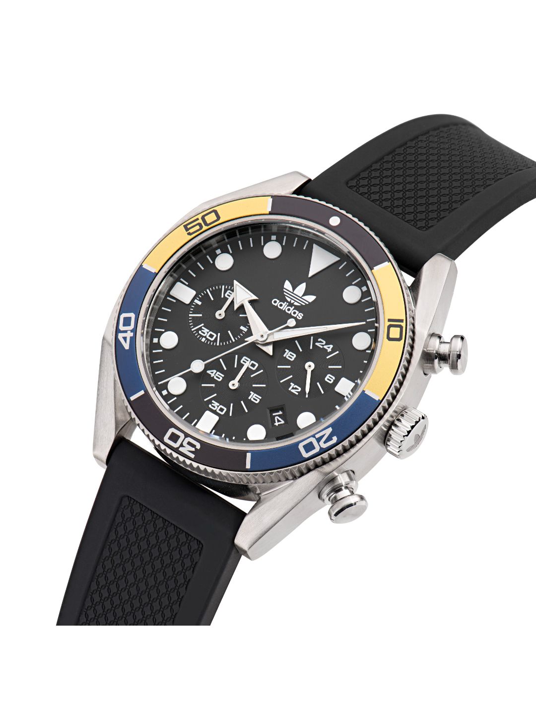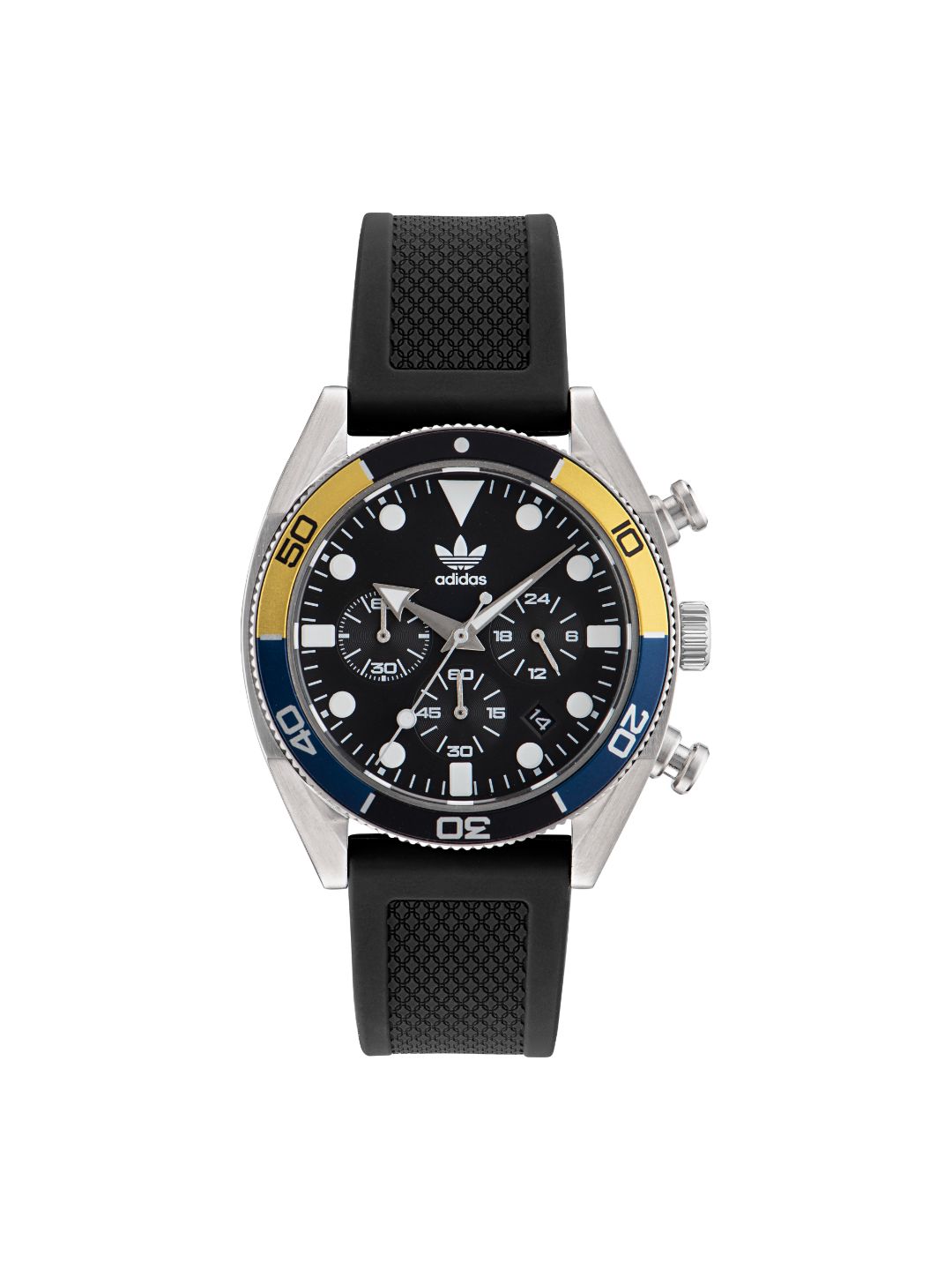 The Adidas Originals Black Dial Unisex Watch offers classic design and reliable functionality. This watch, with its chronograph display and quartz movement, is ideal for casual events. This watch is water resistant to 100 meters and has a mineral glass dial, making it suitable for everyday wear. It has a one-year warranty?áand a black silicone strap with a plastic dial. To keep it looking its best, use a cotton cloth to clean the dial.