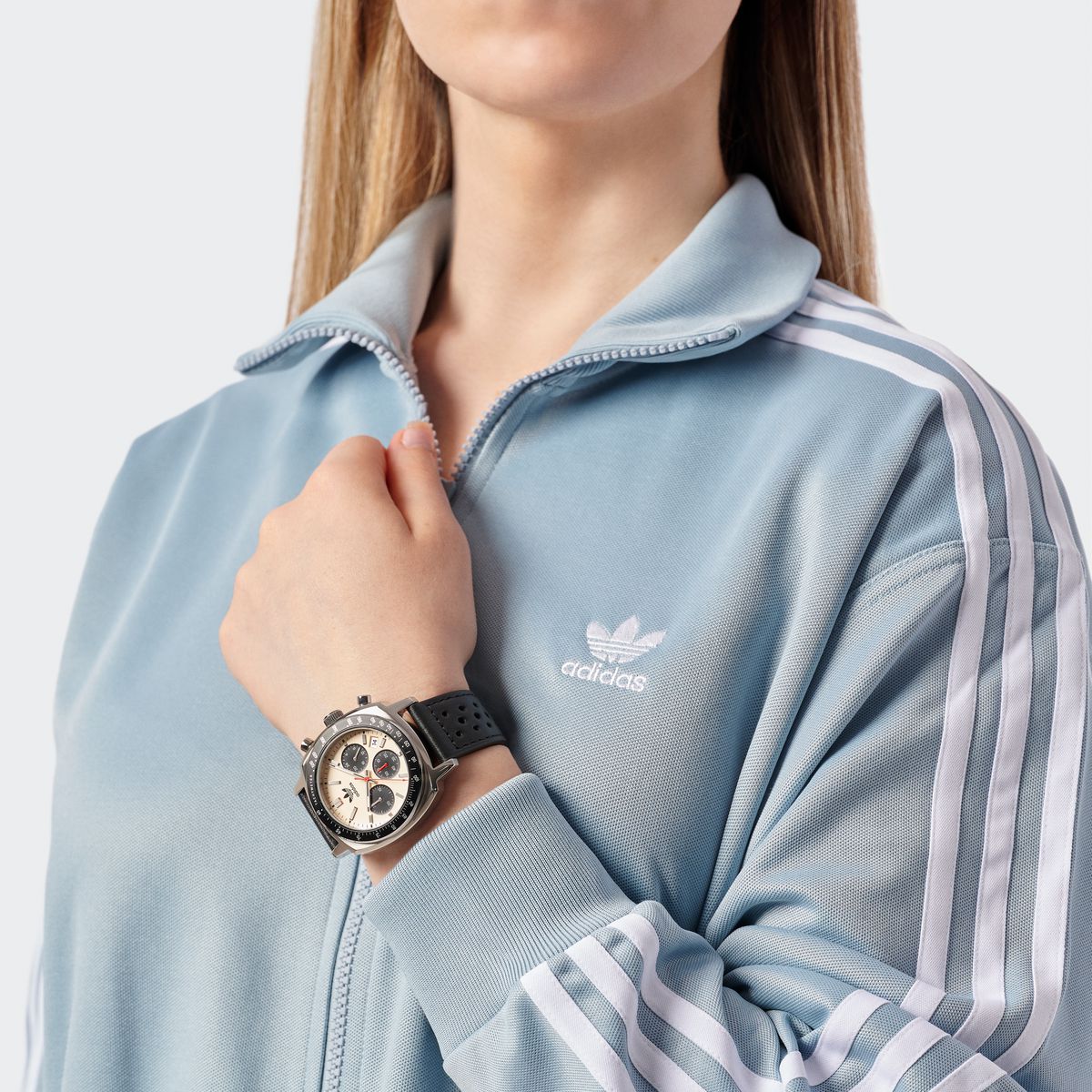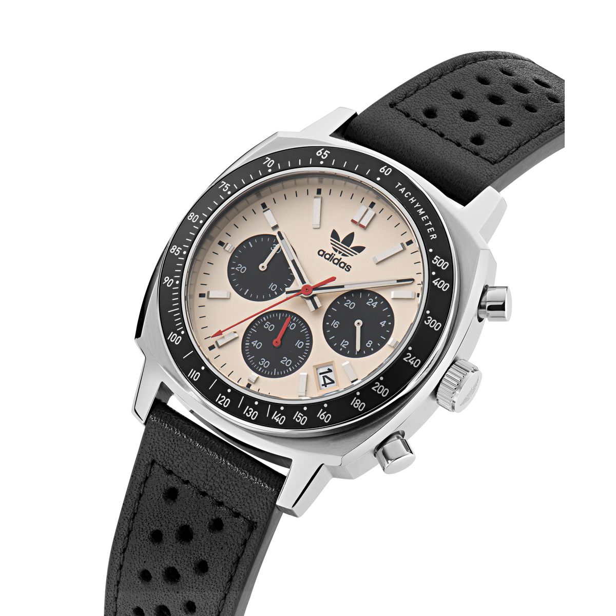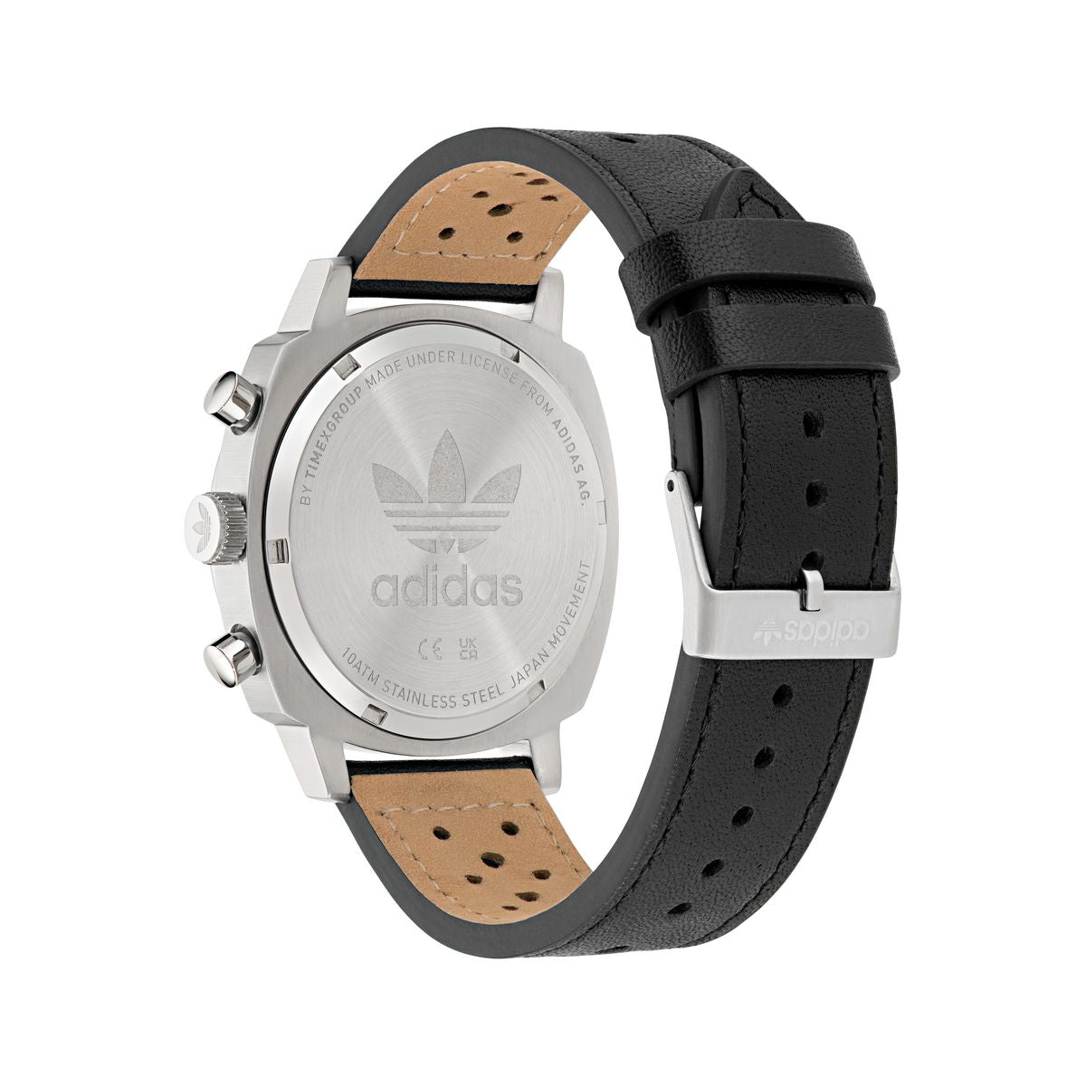 The adidas Master Originals One Chrono watch combines a classic shape with sporty elements. The durable leather strap, quartz chrono movement, and water resistance ensure reliability. Enjoy the stylish black strap and white dial for a timeless look.