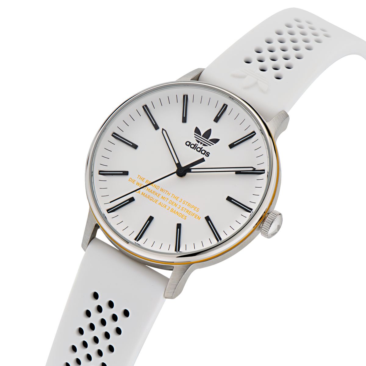 This adidas Code 1 watch is elegant and sporty all at once. The round face features a classic dial with applied markers. Its clean silhouette makes it the perfect accessory for your favorite outfits., Attachment Color : White, Attachment Material : Silicone, Dial Color : White
