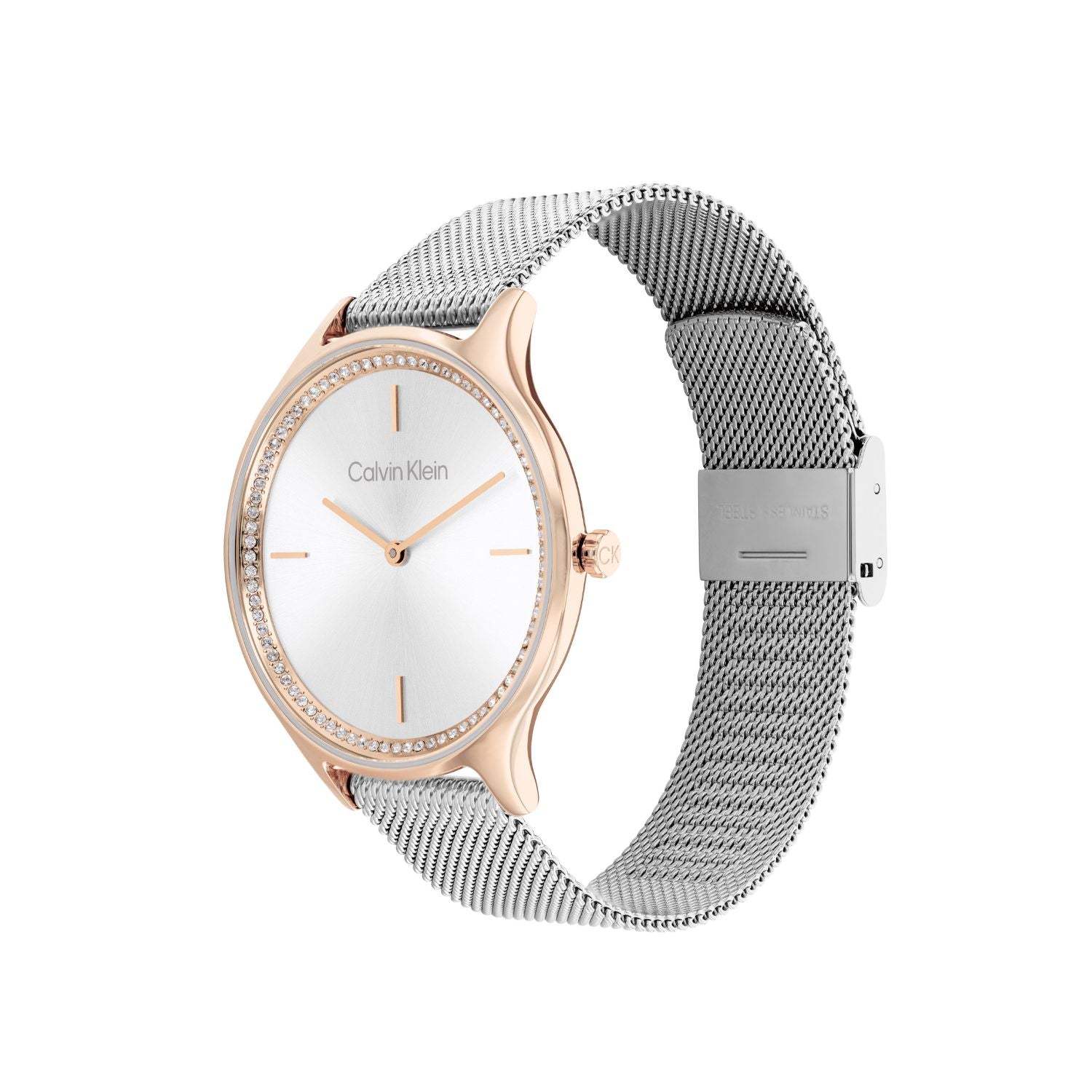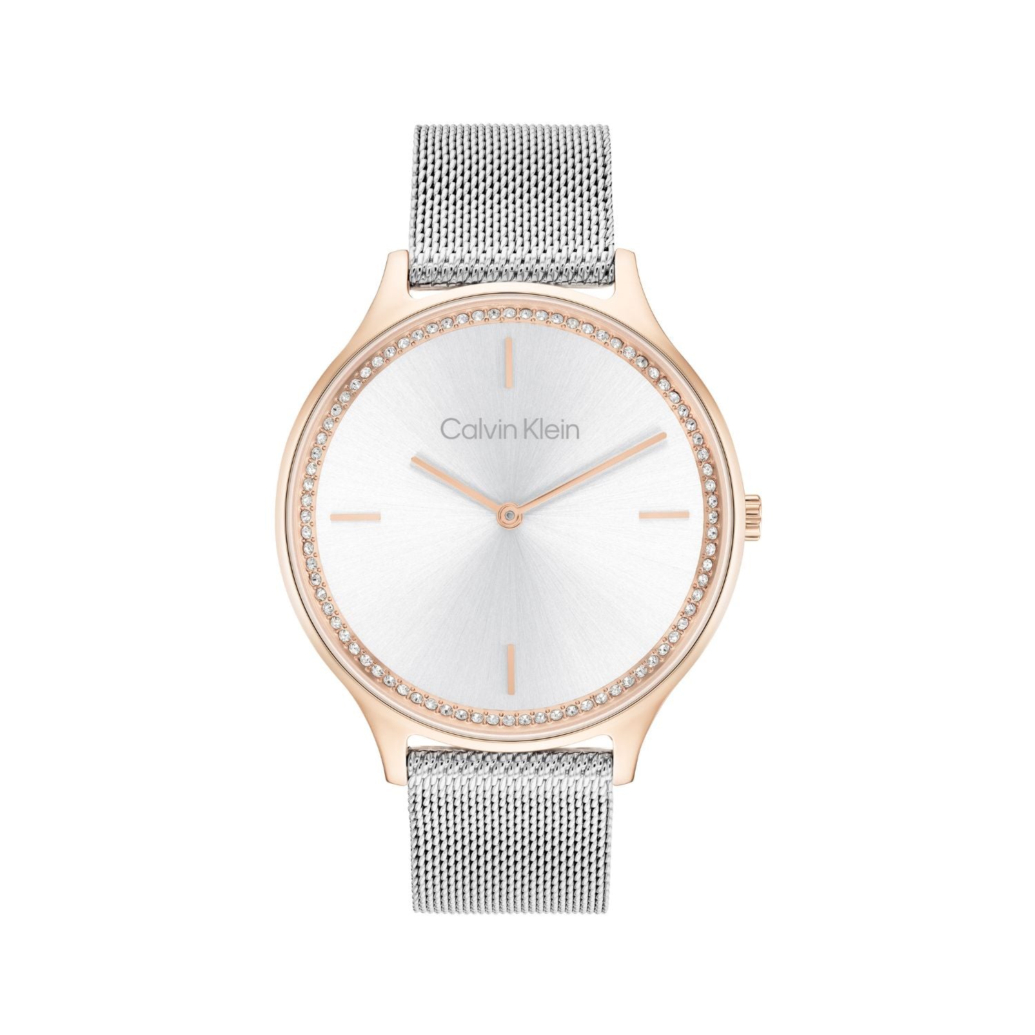 The Calvin Klein CK TIMELESS Quartz watch for women features a classic silver round dial encased in durable stainless steel, combining elegant design with lasting strength. Its multicolor band adds a modern and versatile touch, perfect for complementing both casual and formal outfits. Powered by precise quartz movement, this timepiece ensures reliable accuracy and low maintenance. An excellent choice for those seeking a sophisticated accessory that blends timeless style with dependable performance.