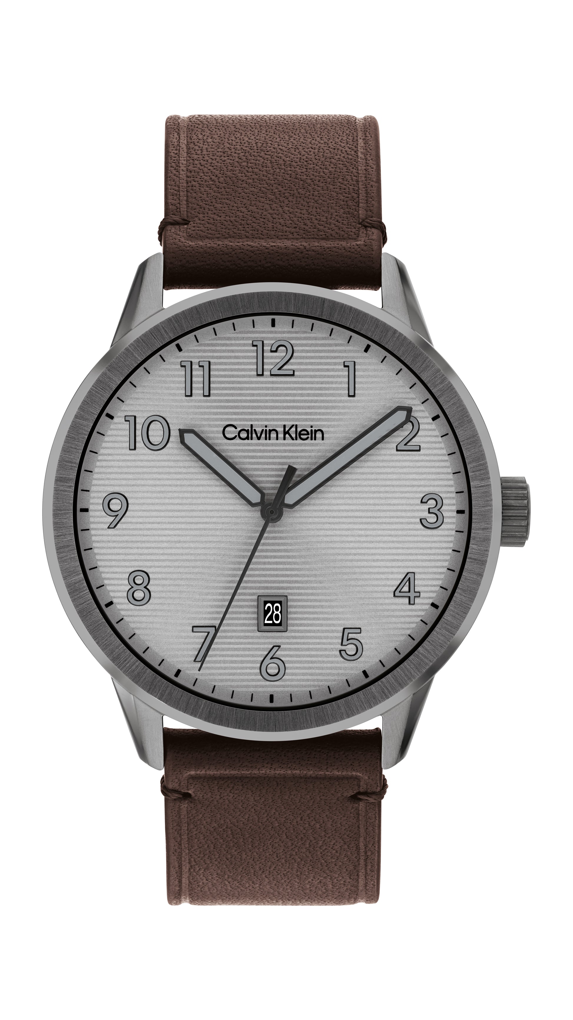 The Calvin Klein MINIMALISTIC PILOT Quartz watch for men features a sophisticated grey round dial paired with a durable synthetic leather band in multicolor, combining modern elegance with comfortable wear. Its precise quartz movement ensures accurate timekeeping and minimal maintenance. This timepiece offers a versatile and refined accessory, ideal for those seeking a minimalist design with reliable performance.