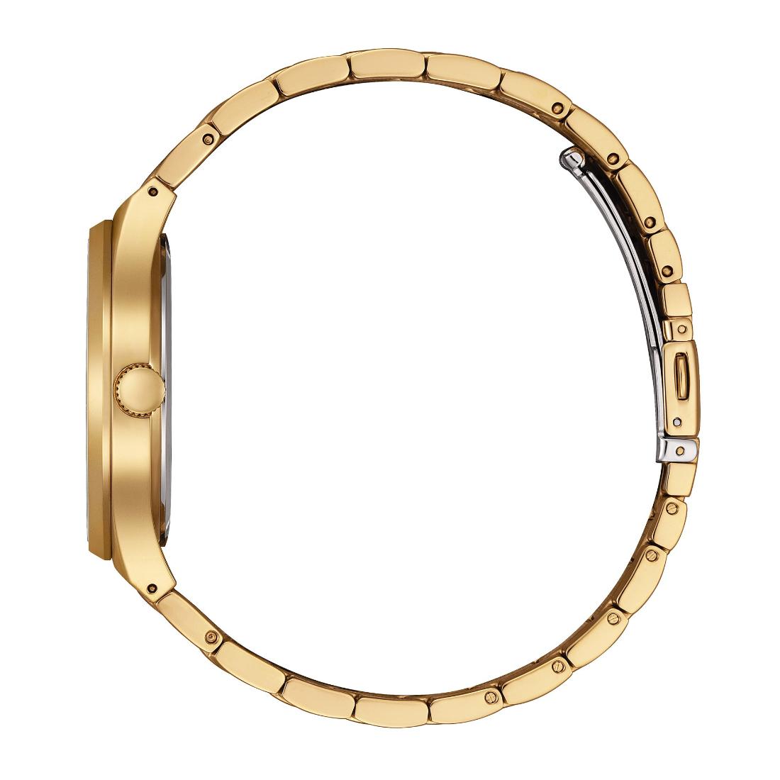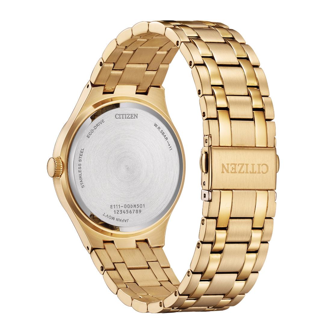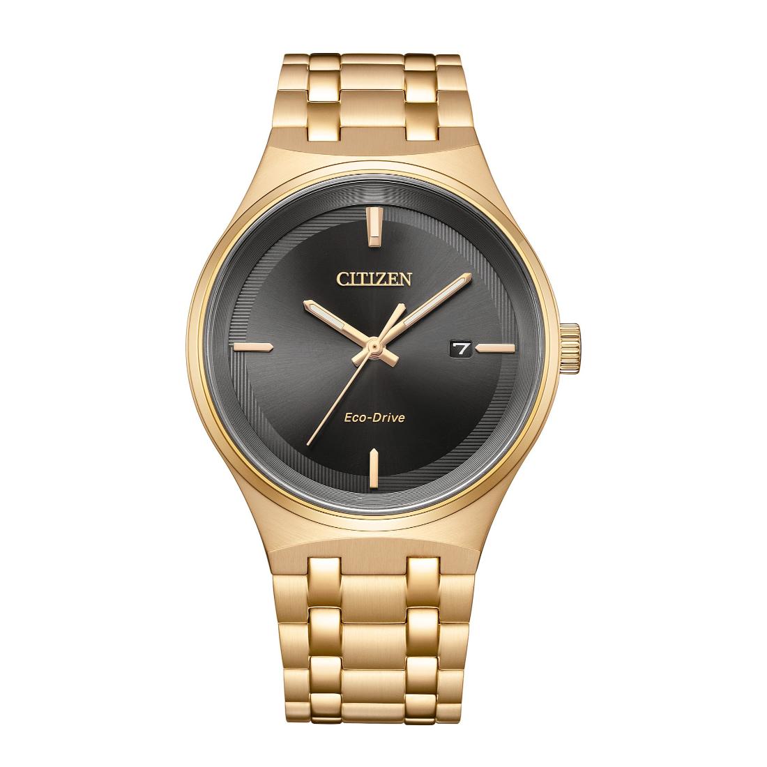 The Citizen BM7653-50E Eco-Drive Men's Watch combines classic design with cutting-edge technology. Crafted with a sleek, gold-tone stainless steel case and bracelet, this timepiece boasts a sophisticated black dial that complements any attire, from business to casual. The watch’s bold yet refined design makes it a versatile choice for everyday wear.