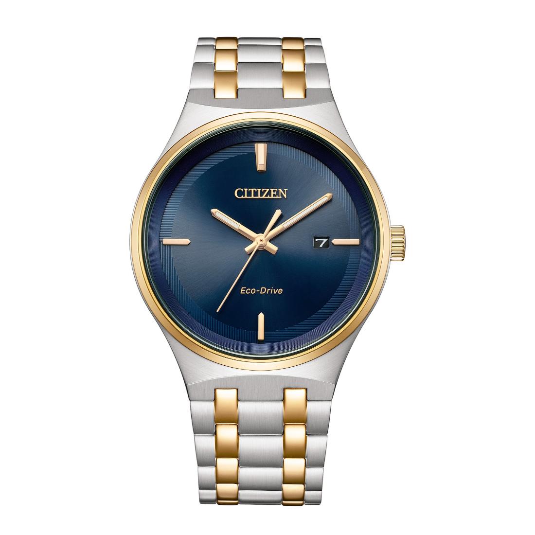 Introducing the Citizen BM7656-51L Eco-Drive Men's Watch, a timepiece that perfectly blends modern technology with classic sophistication. The two-tone stainless steel case and bracelet, paired with a stunning blue dial, create a bold yet elegant look suitable for any occasion, whether formal or casual.