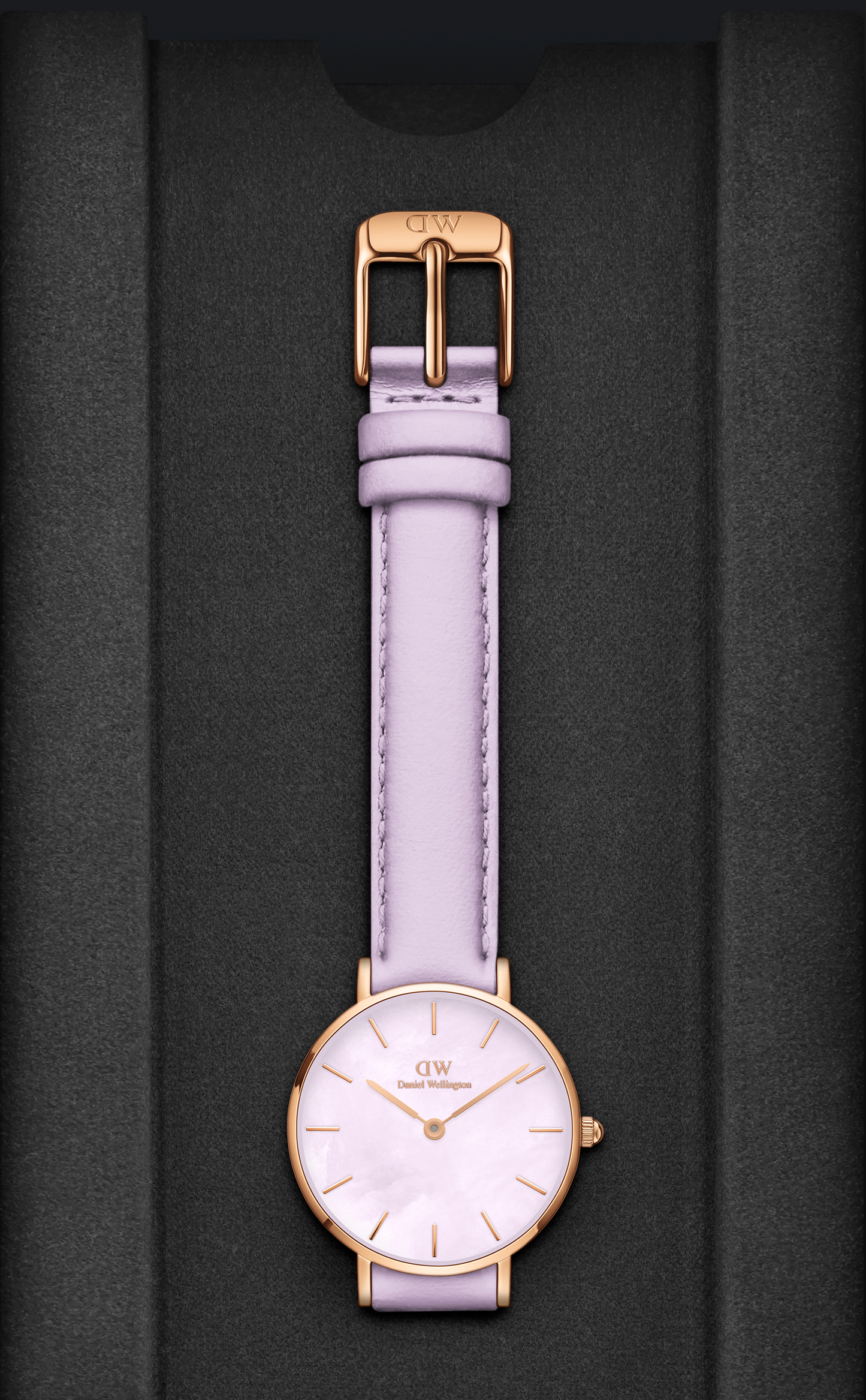 This Daniel Wellington watch features a stunning mother of pearl purple dial, perfect for adding a touch of elegance and sophistication to any outfit. Its analogue display and high-quality materials make it both functional and stylish. Ideal for the fashion-forward woman who values both beauty and practicality.