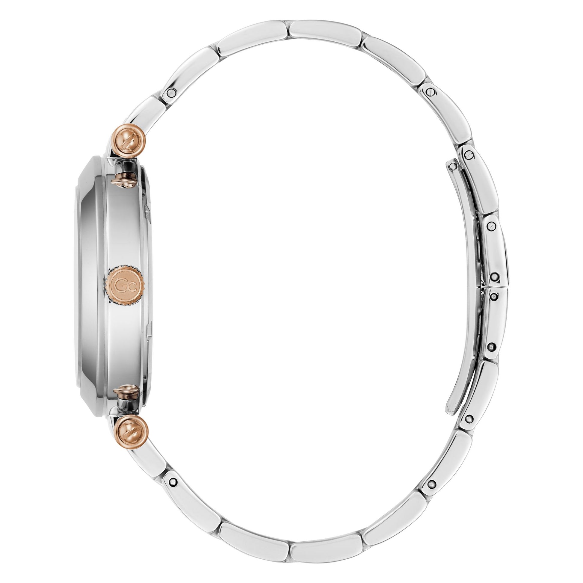 This 36.5 mm timepiece houses a precise Swiss movement within a polished silver case accented with rose gold PVD, paired with a silver bracelet for a balanced blend of elegance and subtle contrast. The blue dial enhances readability and style, while sapphire-coated mineral glass provides excellent durability. Ideal for connoisseurs seeking refined craftsmanship with reliable performance.