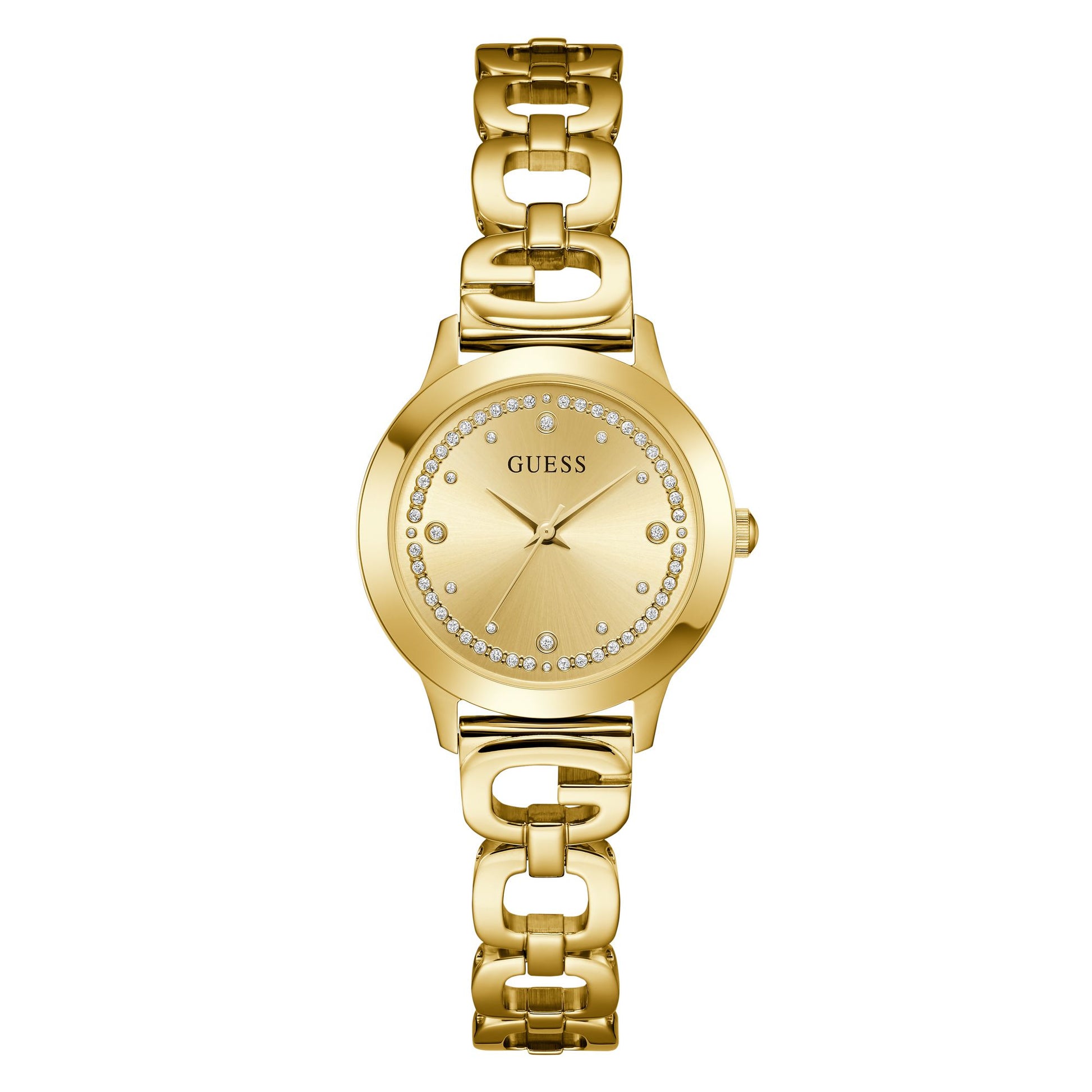 Guess Bejeweled 30 mm Gold Dial Women Analog Watch- U1457L2M