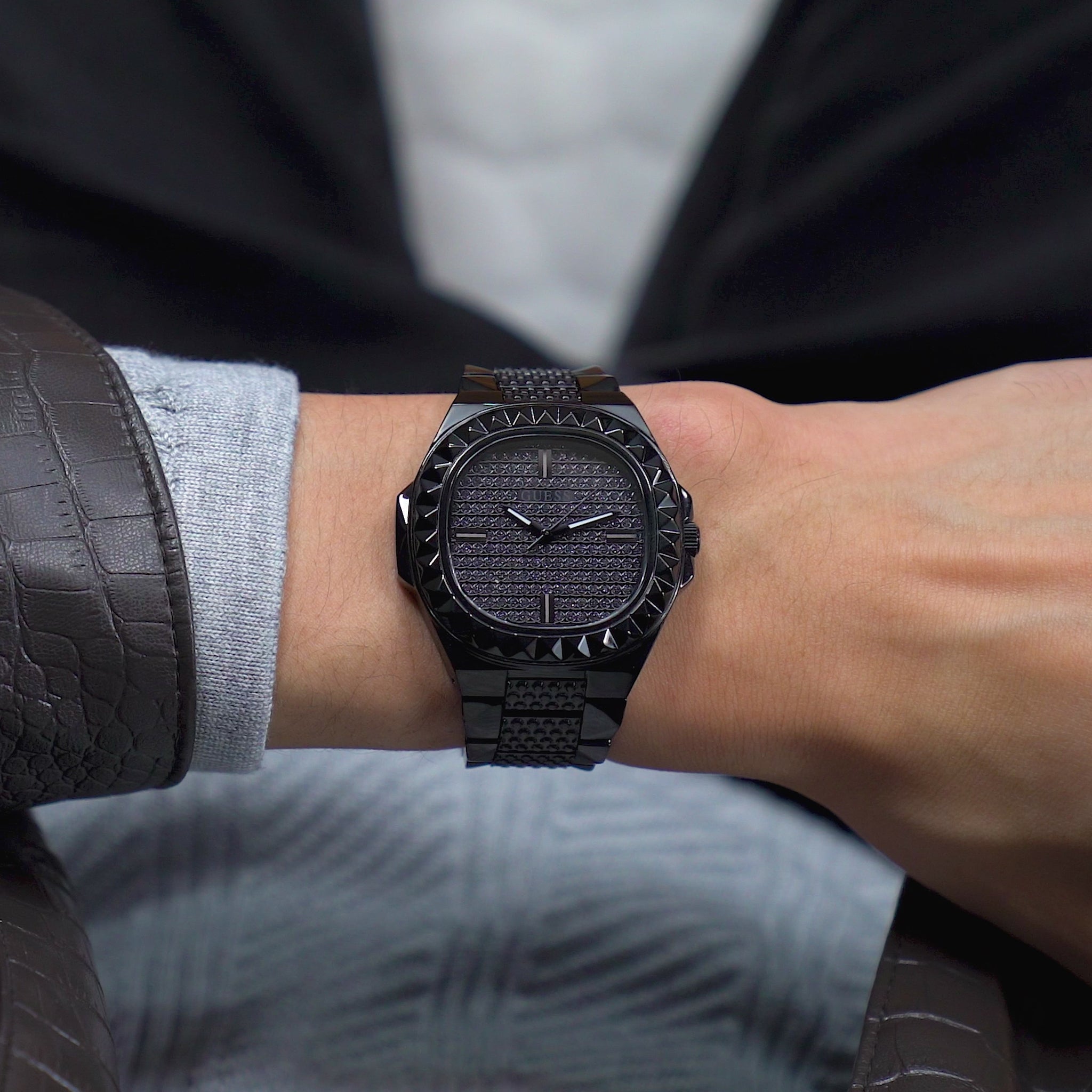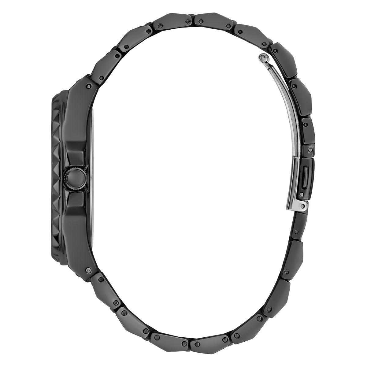 Discover sleek and sophisticated style with the Guess Black Dial Men Analog Watch. Featuring a striking black dial and durable black stainless steel strap, this watch exudes effortless elegance. With a classic analog display, this watch is perfect for any formal or casual occasion. Experience the perfect balance of functionality and fashion with this timepiece.