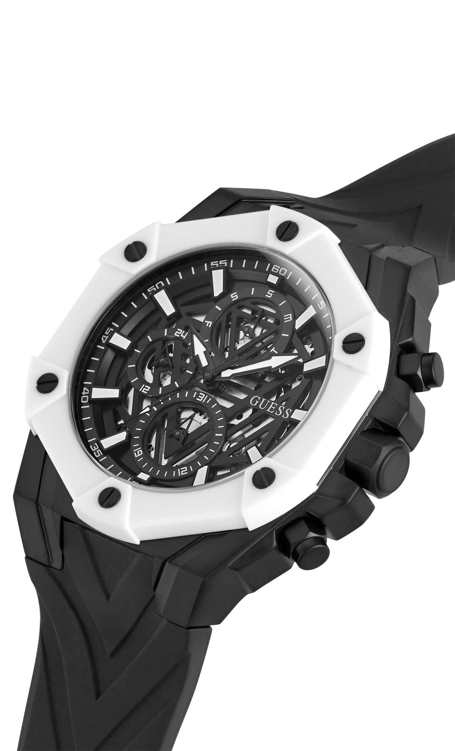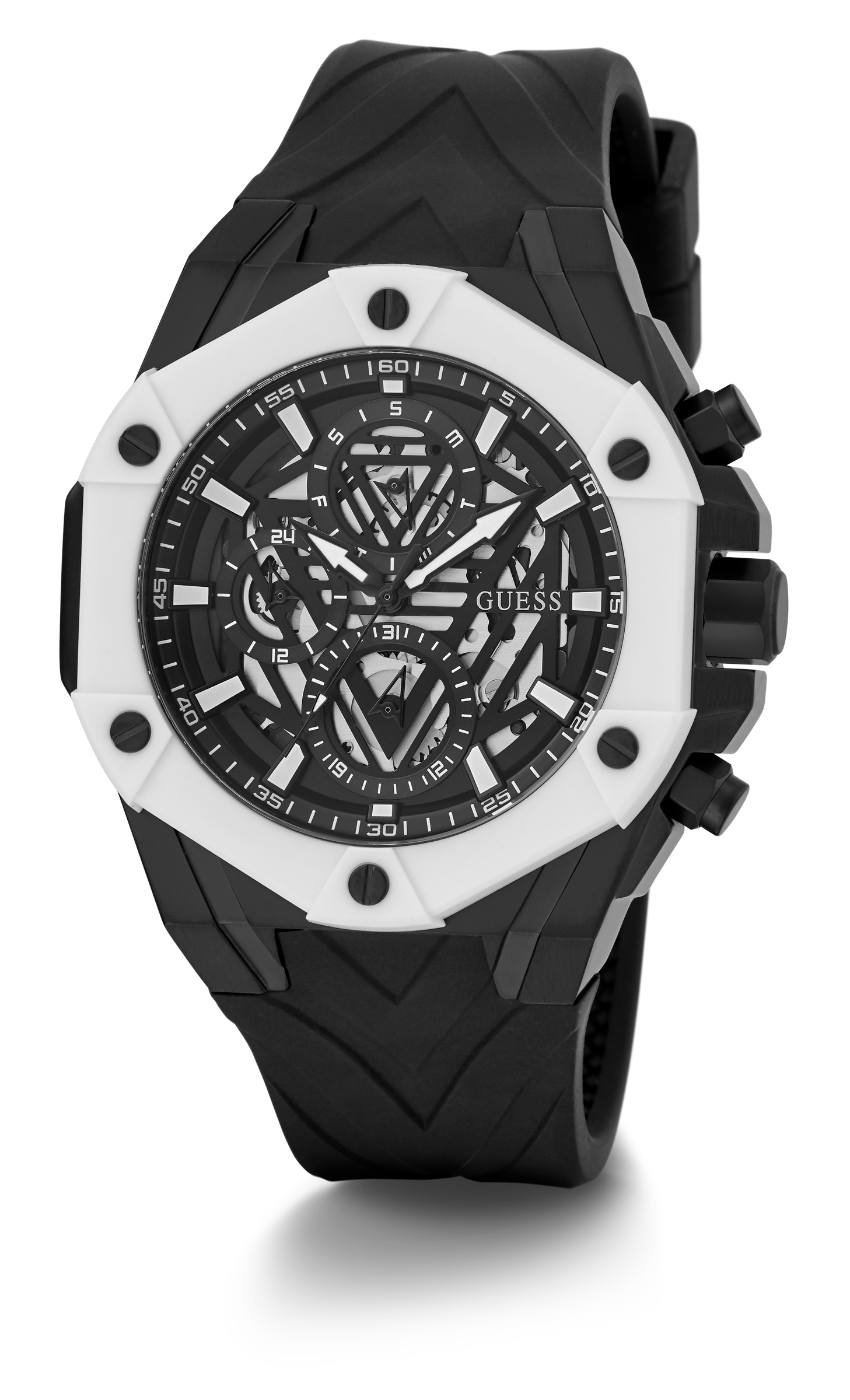 The Guess Black Dial Men's Watch is expertly created and designed?áfor every occasion. With a sleek black dial and a 47 mm round shape, this watch exudes a professional and modern look. Water resistance to 50 meters and mineral glass material offer durability and dependability. The watch?áincludes a one-year warranty. To keep it looking its best, use a cotton cloth to clean the dial.