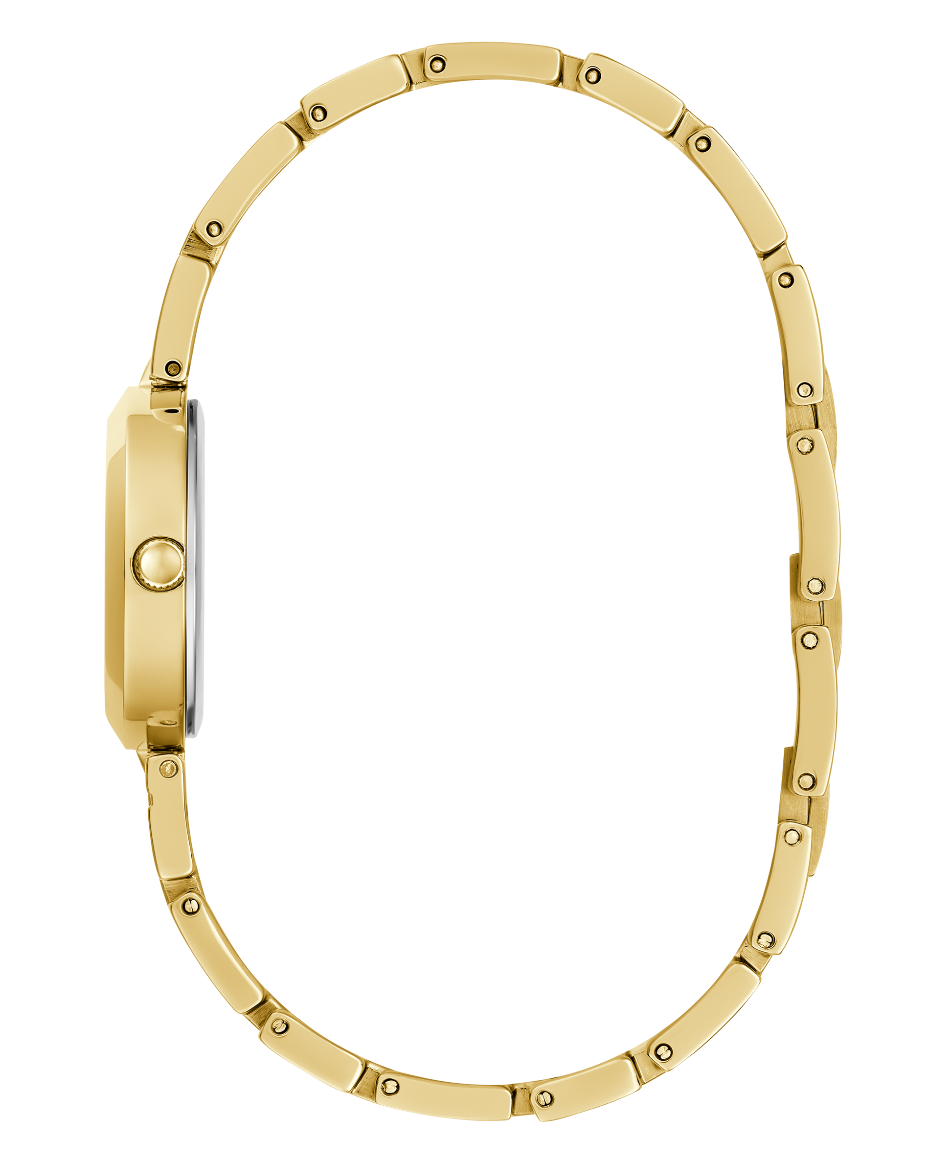 Introducing the Guess Champagne Dial Women Watch. This analogue?áwatch?ádisplays elegance and sophistication with its round champagne dial?áand gold-tone stainless steel strap. It is ideal for everysay use,?áits 30 M water resistance and mineral glass finish. This watch, with a one-year guarantee and easy maintenance, is a must-have for any casual ensemble. To keep it looking its best, use a cotton cloth to clean the dial.