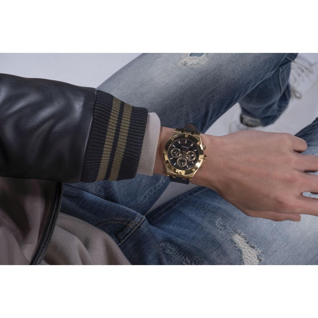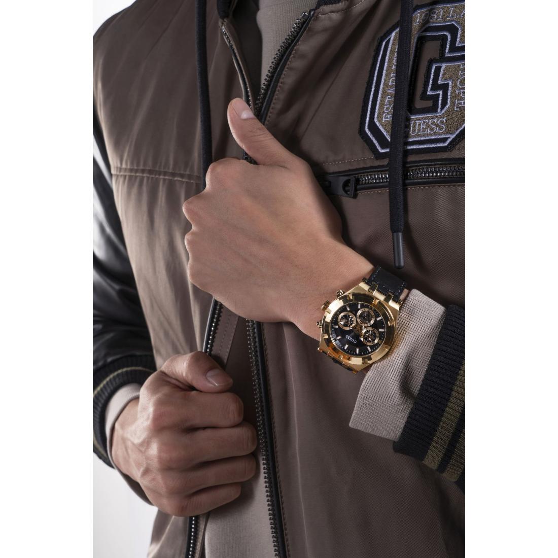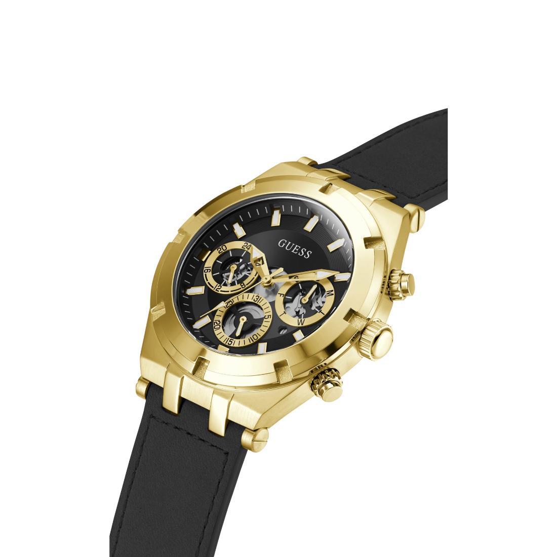 This men's analog watch from Guess features a sleek and modern design with a 44 mm black dial. With its classic and timeless style, this watch is sure to elevate any outfit. The perfect choice for a sophisticated and polished look.