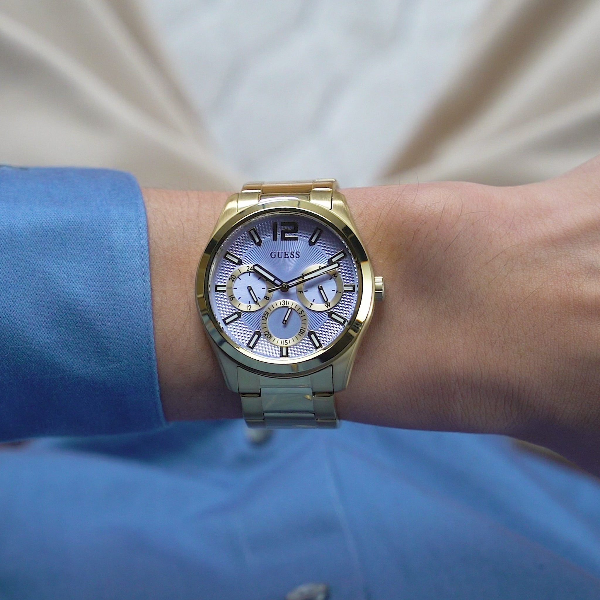 The Guess Dress collection introduces the GW0707G2, a refined 42 mm chronograph watch showcasing a sophisticated blue dial that merges technical capability with contemporary elegance. This analog chronograph features integrated stopwatch functionality, delivering practical performance for the achievement-focused professional. The substantial case size ensures optimal readability and wrist impact, while the serene blue tone introduces distinctive character without compromising versatility across formal and business settings. Built with Guess's commitment to precision engineering, this dress chronograph balances advanced timekeeping features with polished aesthetics. An ideal selection for those who demand a timepiece that excels in both performance and refined presentation.