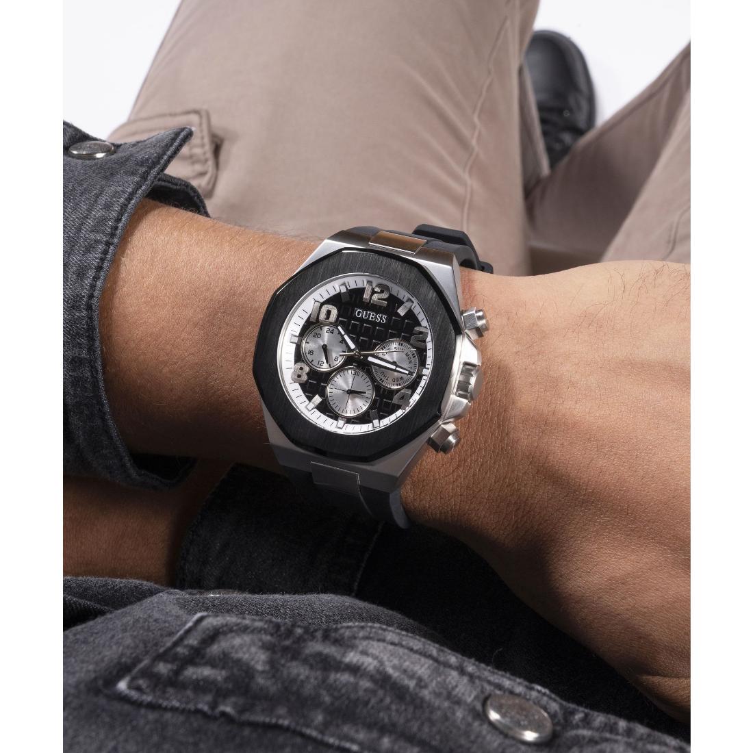 Introducing the Guess Empire 46mm Size Black Dial Men Analog Watch. Crafted for precision and style, this watch features a sleek black dial and analog display that exudes sophistication. With its 46mm size, it guarantees a comfortable fit for everyday wear. Elevate your look with this timeless accessory.