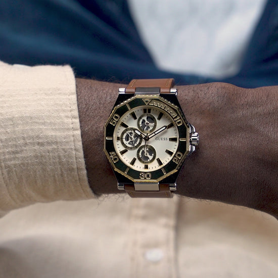 The Guess GD Prime 46 mm White Dial Men Analog Watch (GW0704G1) combines a commanding presence with refined functionality. Its expansive 46 mm white dial offers exceptional readability, accentuated by precise analog movement. This watch is engineered for men who appreciate bold design and reliable timekeeping, effortlessly complementing both business attire and casual looks. With its durable construction and clean aesthetics, it stands as a versatile accessory for a confident, modern lifestyle.