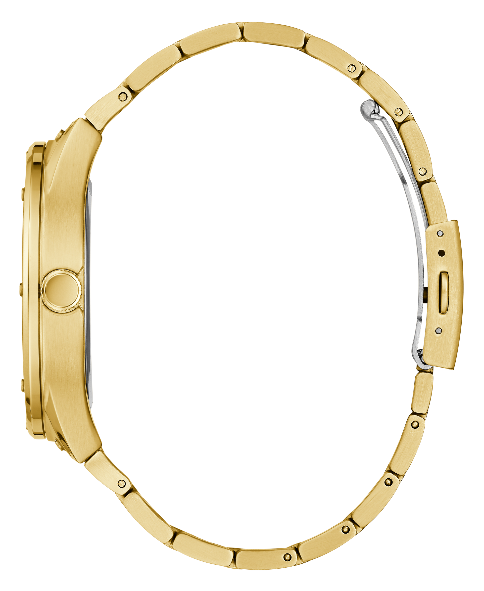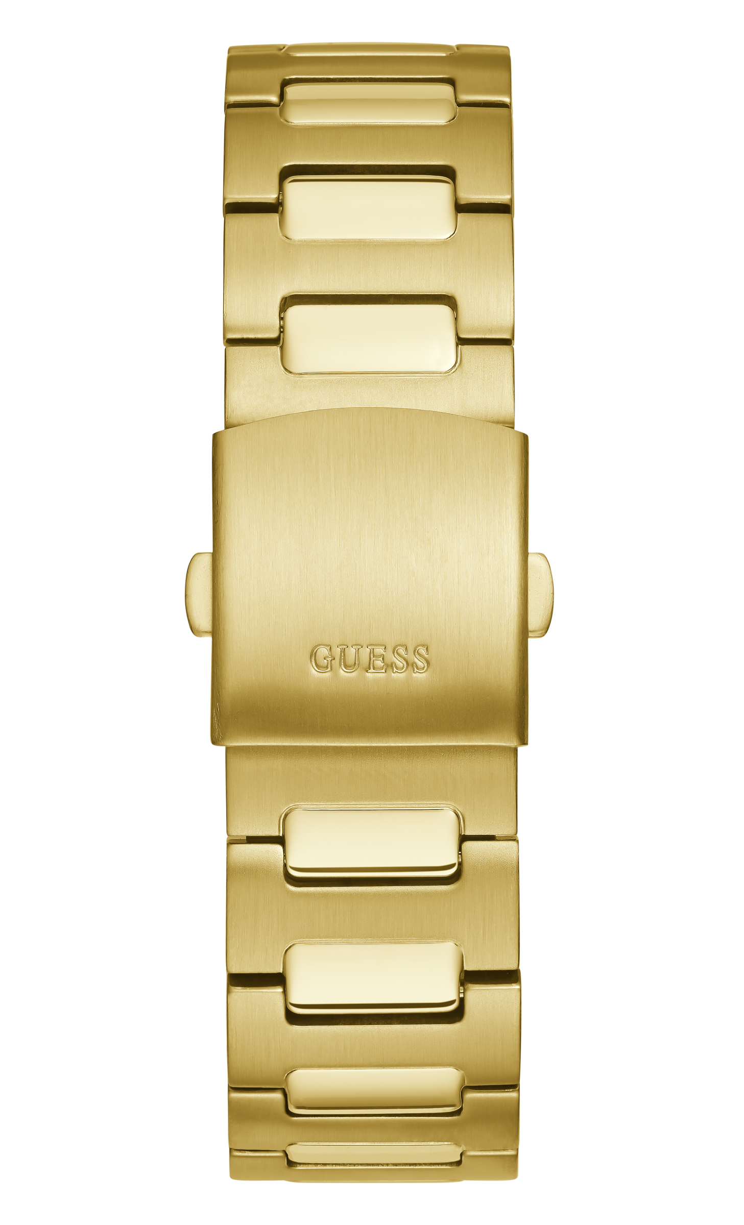 The Guess Gold Dial Men Watch is well-made with a champagne gold dial and a robust stainless steel case and strap that radiate elegance and flexibility. Its 50-meter water resistance makes it appropriate for casual use, while the analogue display and quartz mechanism provide precise timekeeping. This round?á44 mm watch comes with a one-year warranty and is scratch and mineral glass resistant. To keep it looking its best, use a cotton cloth to clean the dial.