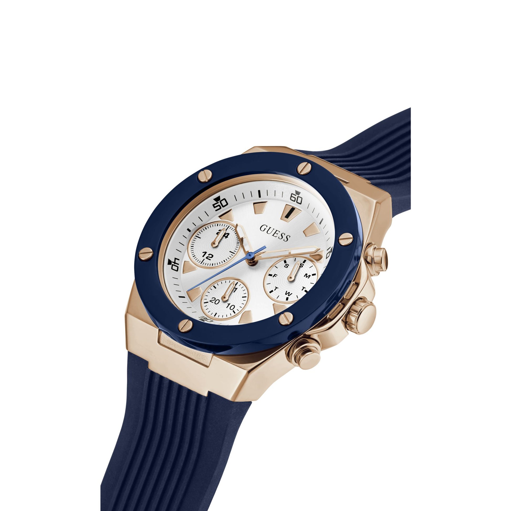 - GUESS Ladies 39 Blue & Rose Gold-Tone Multi-function Sport Watch