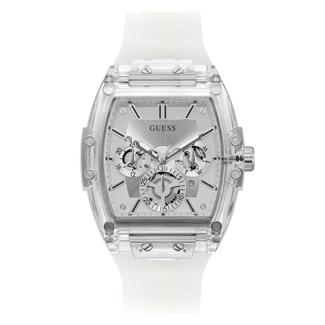 Enhance your style with the Guess Runaway 20.8mm Silver Dial Analog Watch. The sleek design and high-quality materials make this watch a must-have for any fashion-forward woman. With precision timekeeping and a versatile design, this watch will elevate any outfit.