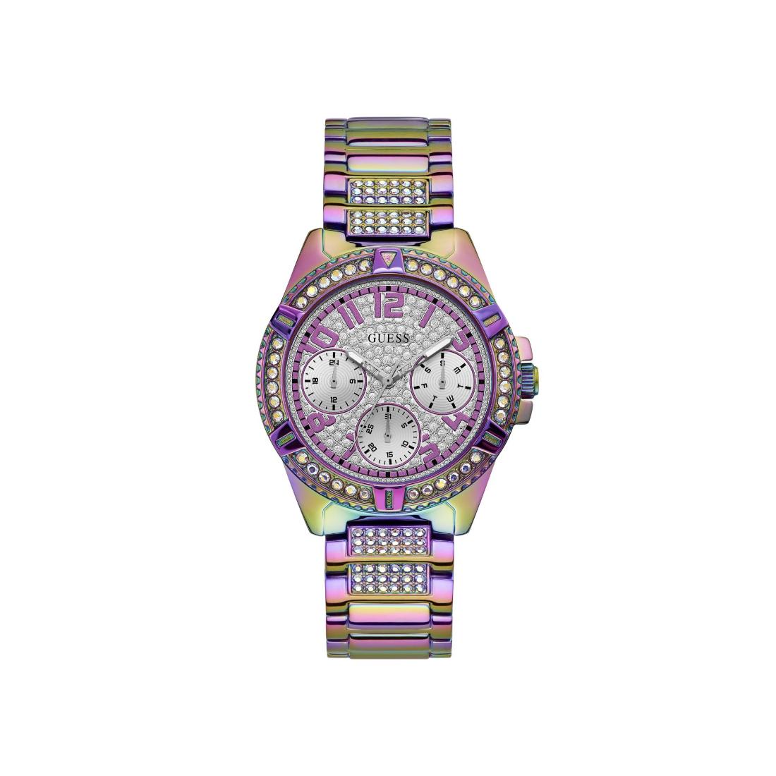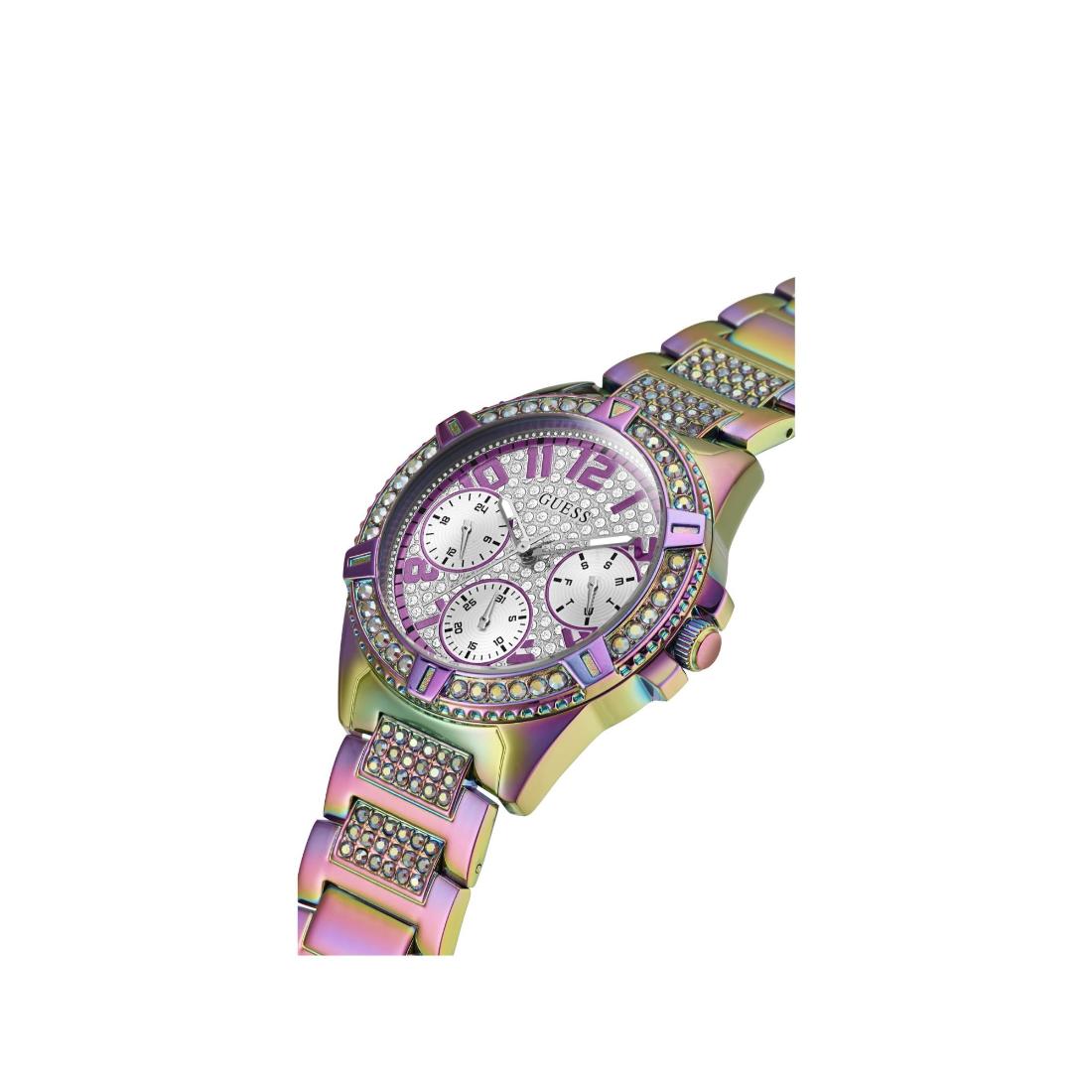 This Guess women's analog watch features a 40 mm silver dial, providing a classic and elegant look. Stay on time and on trend with this versatile and stylish watch. Perfect for any occasion, this watch is both practical and fashionable.