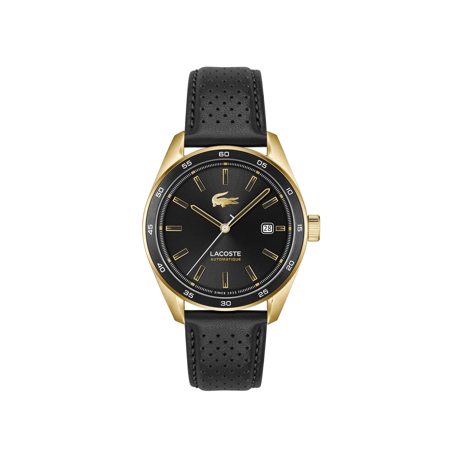 The Lacoste Boston Quartz Men’s Watch features a classic black round dial paired with a durable synthetic leather strap for a sophisticated yet comfortable fit. Its multicolor band introduces a modern, versatile element, blending timeless elegance with contemporary style. Powered by precise quartz movement, this timepiece ensures accurate timekeeping while enhancing your everyday look with refined craftsmanship.