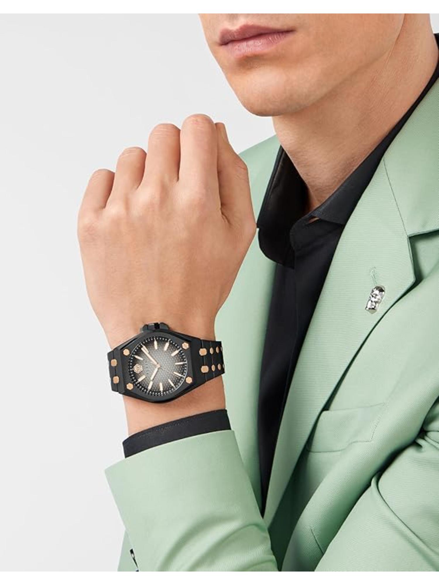 This Philipp Plein Men 43 mm Size Grey Dial Analog Watch combines sleek design with precision engineering. The 43 mm grey dial is both stylish and functional. With superior quality and a timeless look, this watch is perfect for the modern man who values both style and functionality in his timepiece.