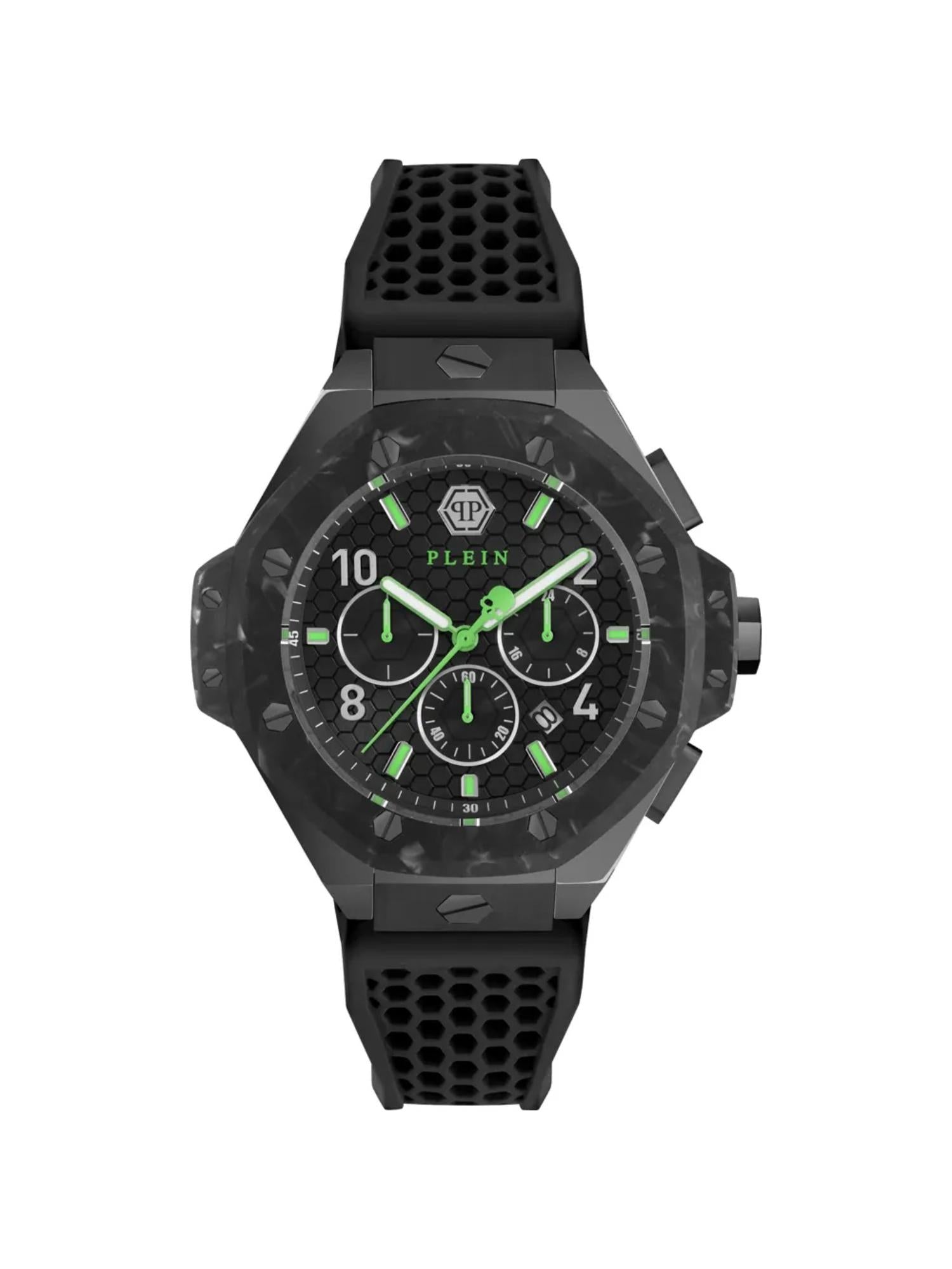 This Philipp Plein men's watch features a 46 mm size black dial and analog display. The sleek design and high-quality materials offer both style and reliability, making it the perfect accessory for any outfit. With precise timekeeping and water resistance, this watch is a must-have for any man.