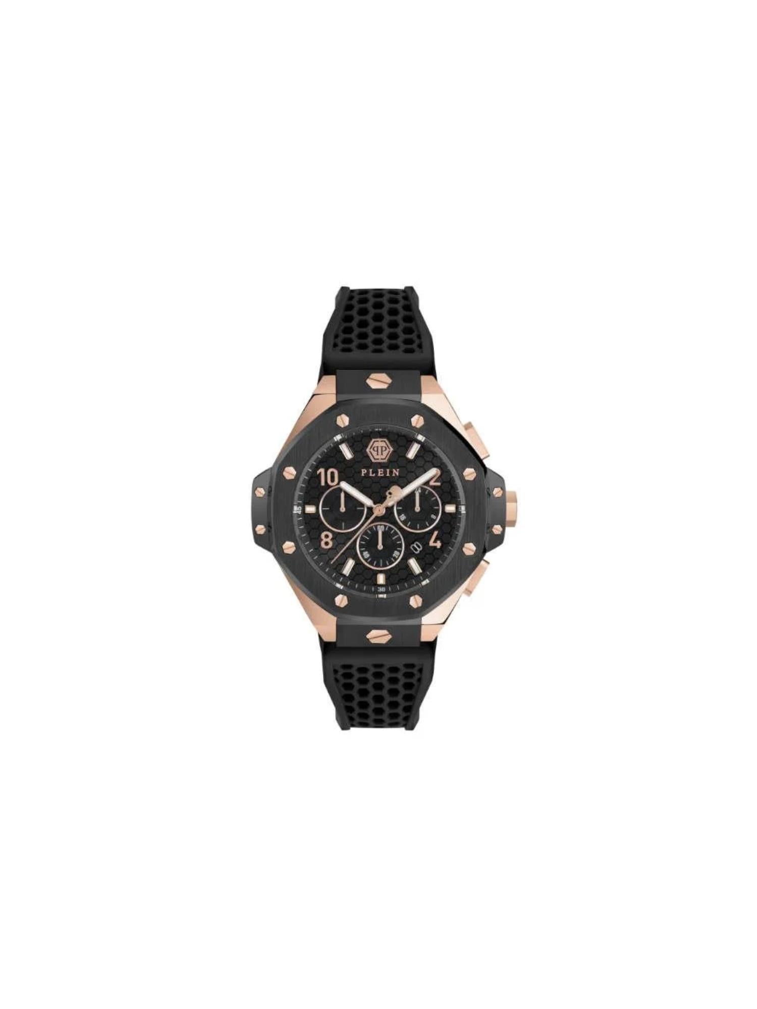 Expertly crafted Philipp Plein Men's 46 mm Size Black Dial Analog Watch. Sleek and sophisticated design with a bold black dial. High-quality materials ensure durability and style. Perfect for any occasion. Upgrade your timepiece game with this elegant watch.