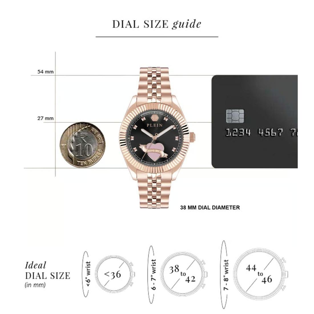 The Philipp Plein Newness 38 mm Unisex Watch with a black dial offers a sleek and contemporary aesthetic suitable for any wrist. Its 38 mm case provides a perfect balance between presence and comfort, while the dark dial enhances readability and adds a touch of sophistication. Designed for those who value precision and style, this watch seamlessly blends functionality with a bold, modern look.