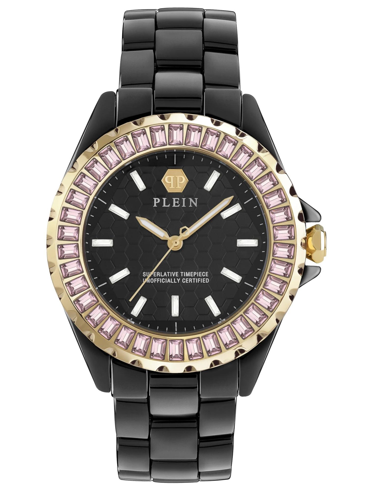 This Philipp Plein women's analog watch features a 38 mm black dial, providing a sleek and stylish design. With its durable construction and precise timekeeping, this watch is perfect for any fashion-forward woman looking for a reliable timepiece. Upgrade your accessories with this beautiful timepiece.