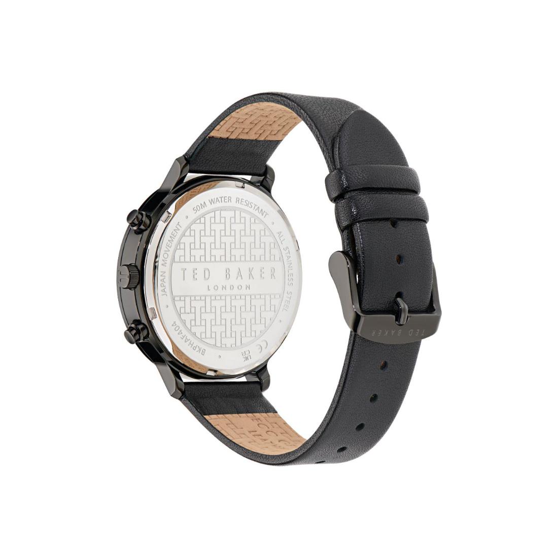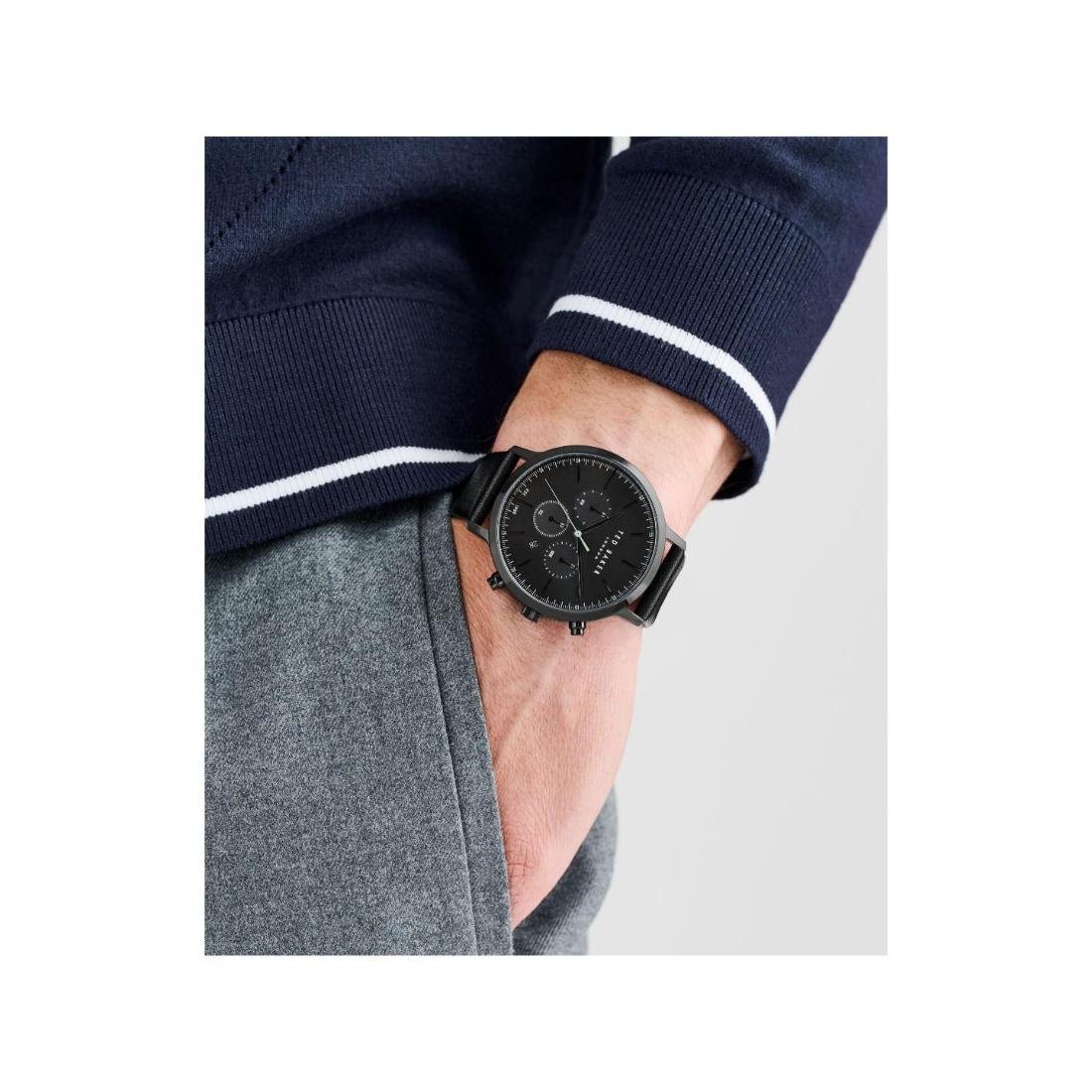 Explore Ted Baker's latest addition: Haarvin, a chronograph watch featuring a 44 mm case. It's the perfect accessory to add a touch of modernity to your outfits while maintaining a timeless style. Discover it in all-black with leather strap, now available with a 100% sustainable source package.