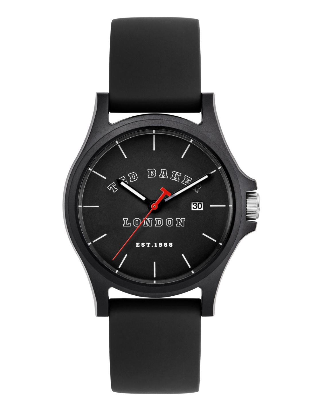 The Ted Baker Irby Men Black Wrist Watch can help you step up your style game. This analogue watch, with its sleek black dial?áand durable silicon band, is ideal for casual events. It's both useful and attractive, with a quartz movement and a water resistance of 50 metres. The one-year warranty and mineral glass assure long-term use. To keep it looking its best, use a cotton cloth to clean the dial.