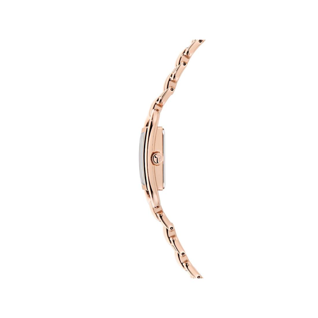 Introduced in SS24 this style is a state of the art piece of jewelry ideal for a classic look, this watch is available with the rectangular case and enriched in this season with a diamond dust dial. Discover it with the rose gold stainless steel chain .