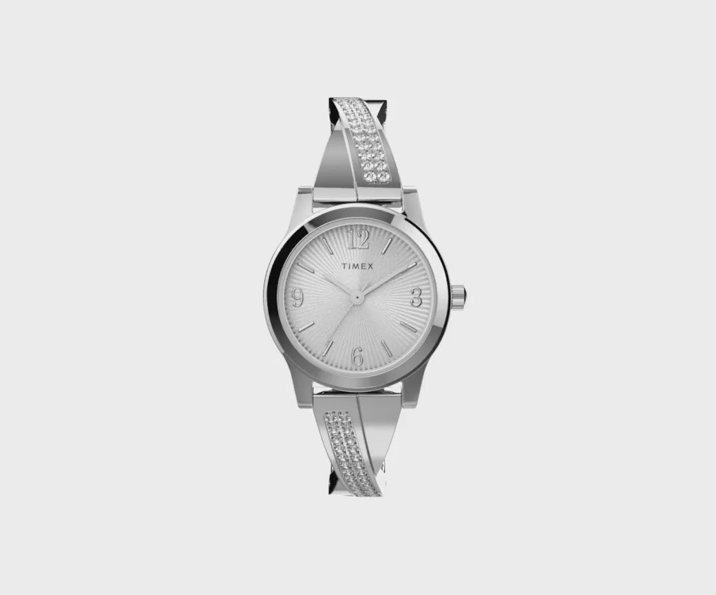 Introducing the Timex Main Street 25 mm Silver-Tone Dial Women Analog Watch. This watch is designed with a stylish silver-tone dial and features a 25 mm case. With the timeless design and precise analog movement, this watch is a must-have for any woman looking for a sophisticated and functional timepiece.