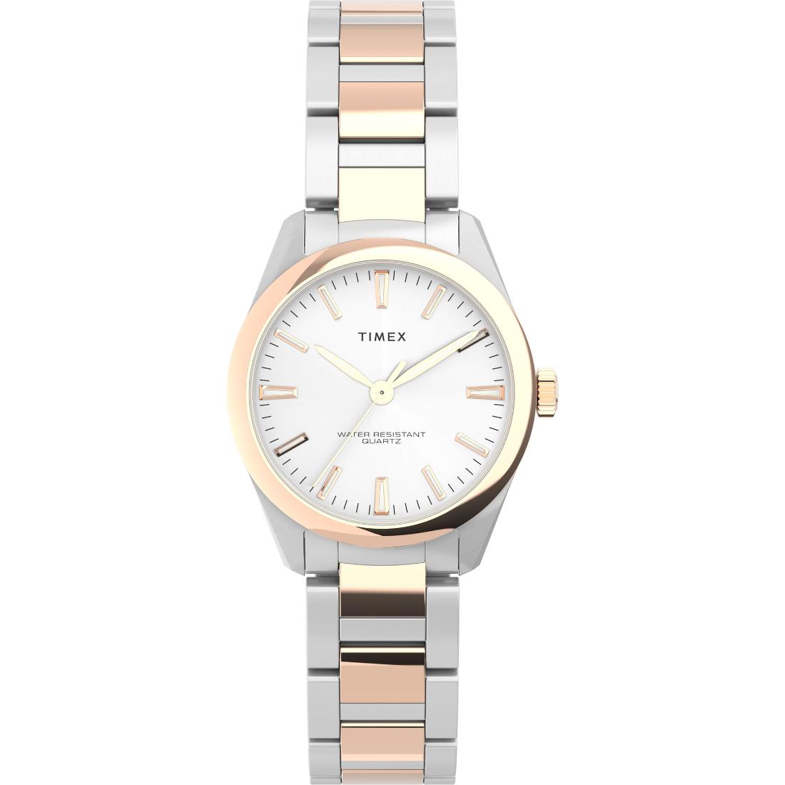 Discover the Timex Silver Dial Women's Analog Watch, an ideal combination of fashion and utility. This single-pack watch features a circular solid brass dial?áand a silver-toned stainless steel band. With a water resistance of 30 meters, this watch is ideal for any casual event. The quartz movement and battery power source are dependable, and mineral glass and a scratch-resistant dial add to the durability. In addition, with a one-year warranty and simple maintenance instructions, this watch is an excellent match to your everyday attire. To keep it looking its best, use a cotton cloth to clean the dial.