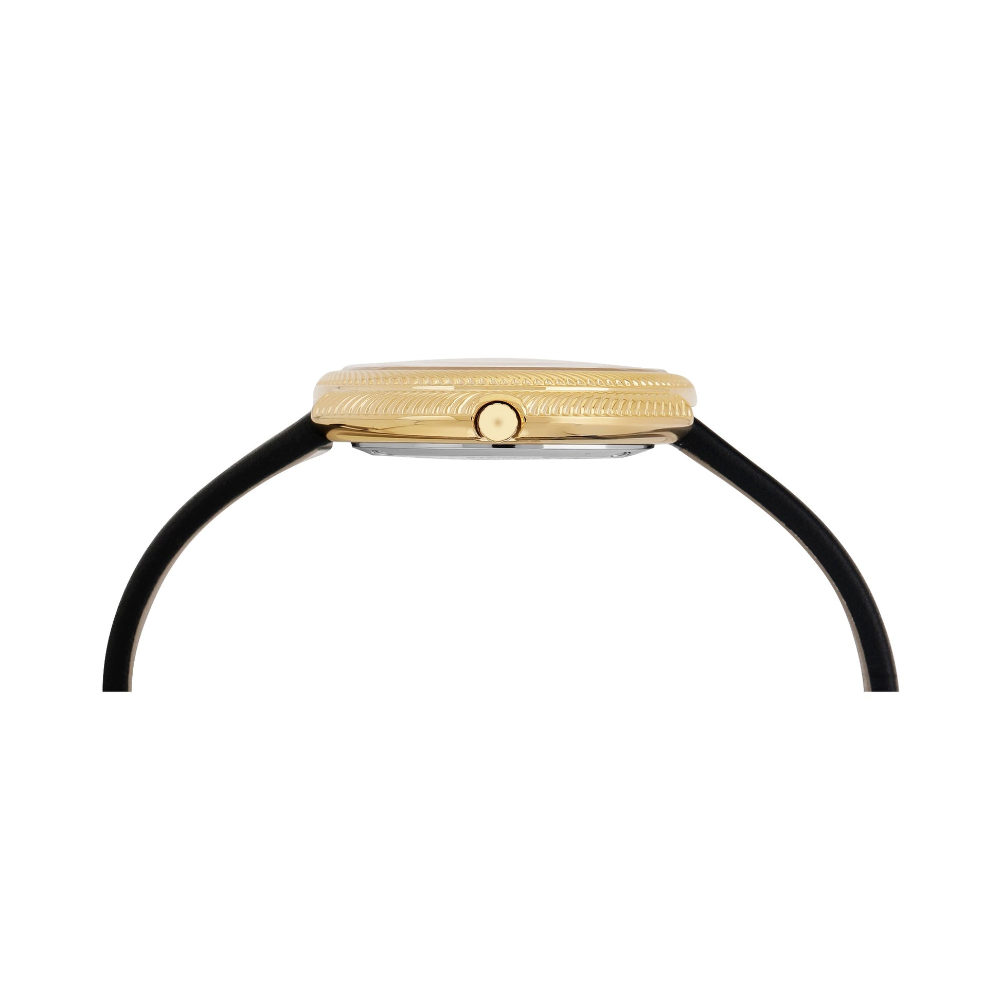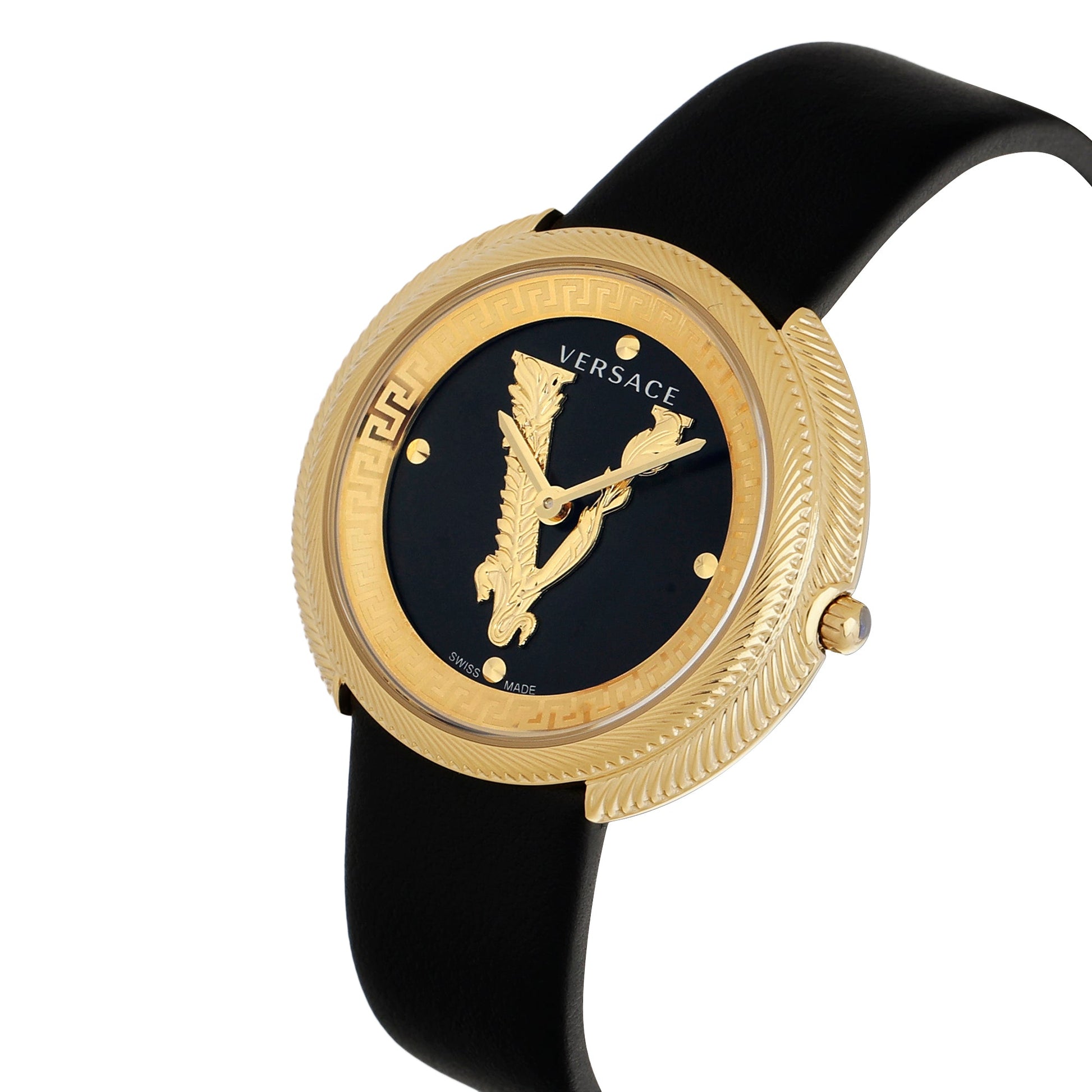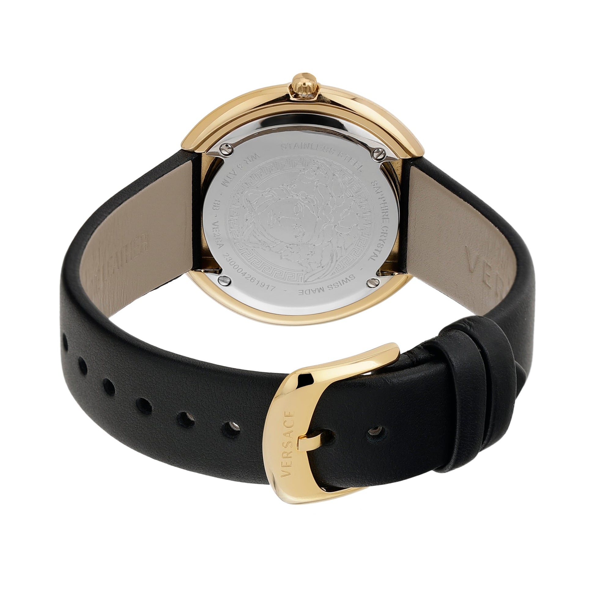 This Versace women's watch features a sleek black dial with 2 hands, powered by a reliable quartz movement. With its classic design and precision timekeeping, this watch is the perfect accessory for any formal or professional occasion. Stay stylish and on time with Versace.