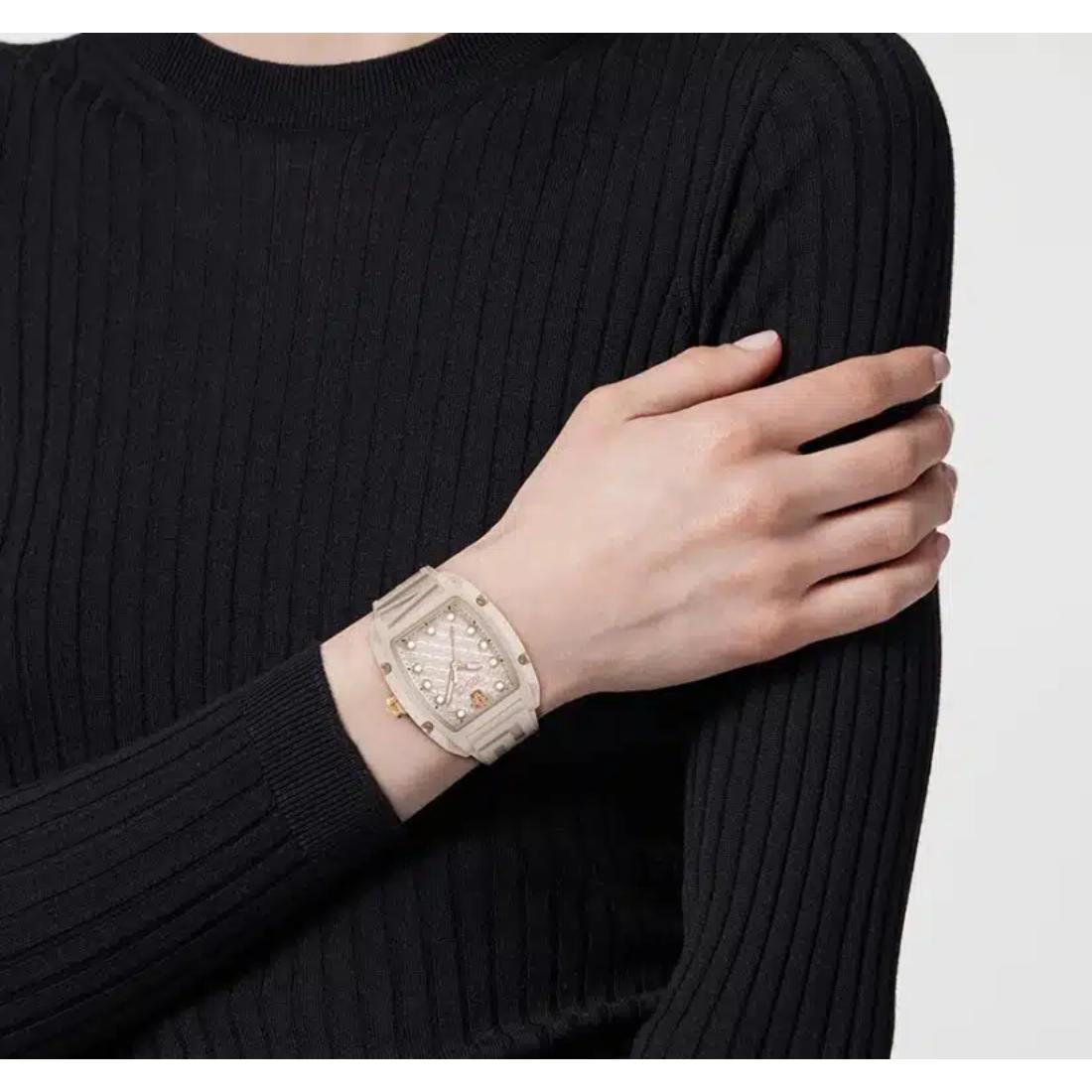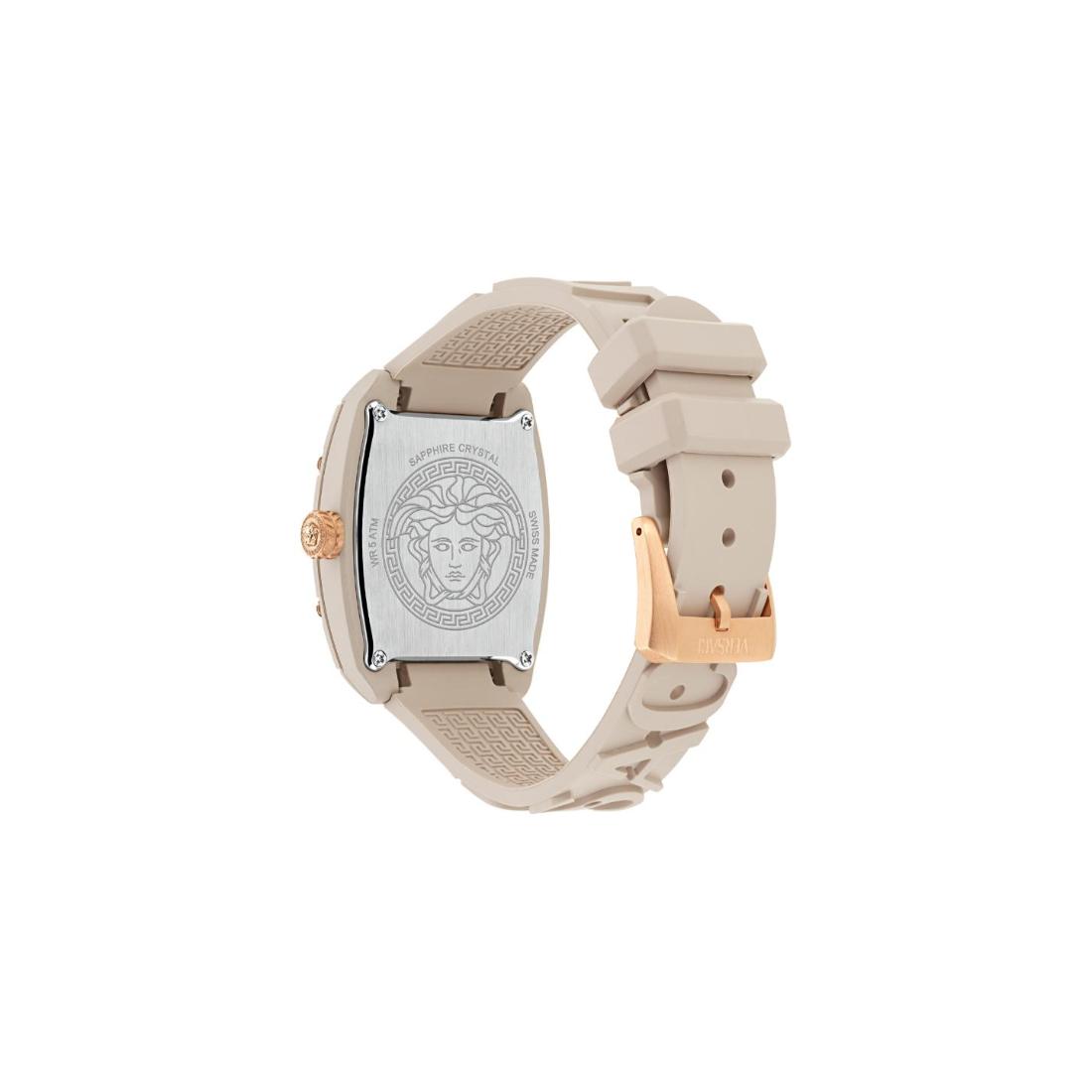 The Versace Dominus women's watch features a 36x44.71 mm case paired with an elegant ivory dial, offering a sophisticated blend of timeless design and modern craftsmanship. This analog watch provides precise timekeeping while enhancing any outfit with its subtle yet distinguished aesthetic, making it an excellent choice for refined, everyday wear.