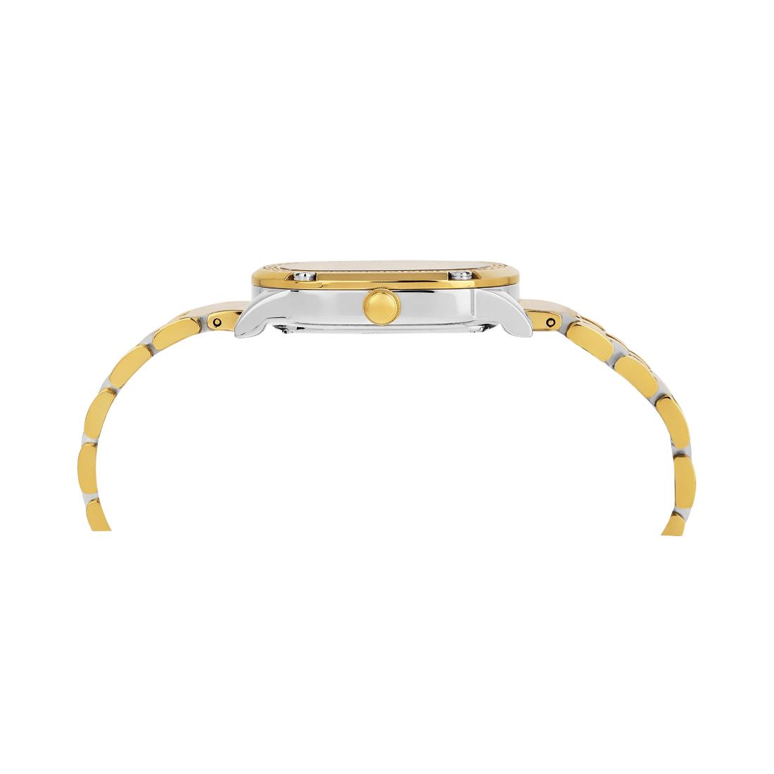 The Versace Greca Couture 29x40 mm women's analog watch features a refined white dial housed within a distinctive rectangular case that combines contemporary style with timeless elegance. Expertly crafted, this timepiece offers precise timekeeping and clear readability while ensuring comfortable wear. Perfect for women who value sophisticated design and want a versatile accessory suitable for both professional and casual settings.