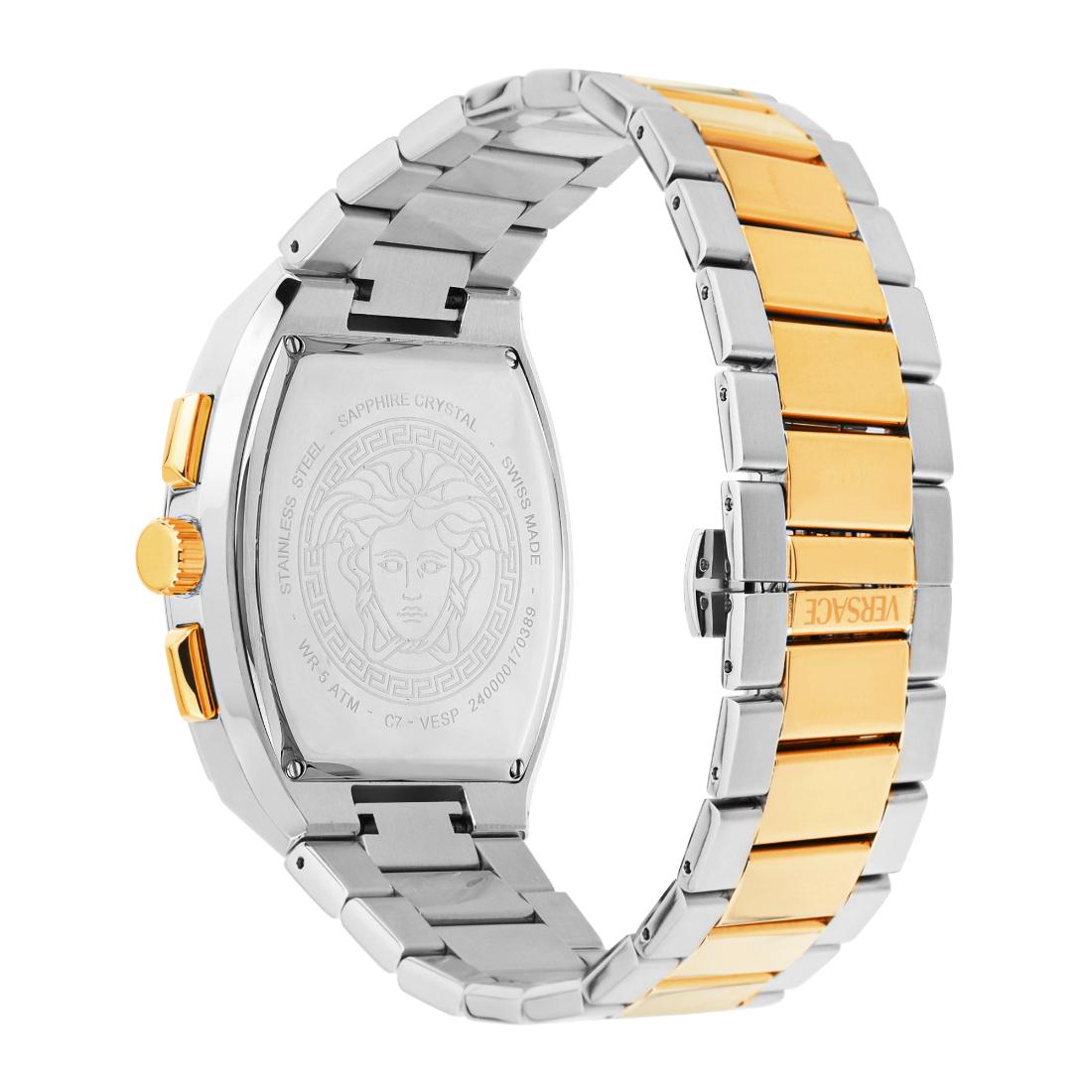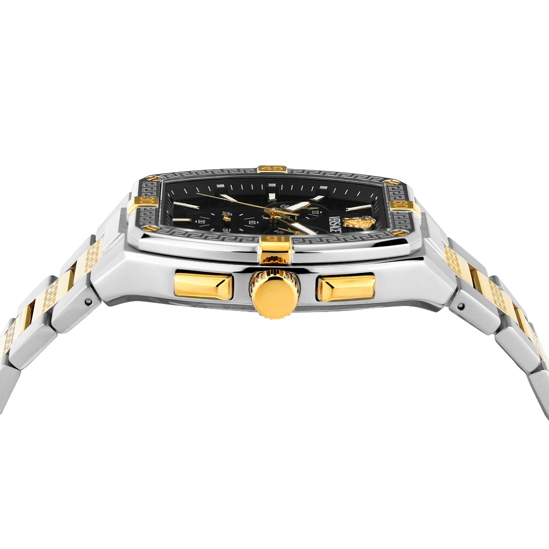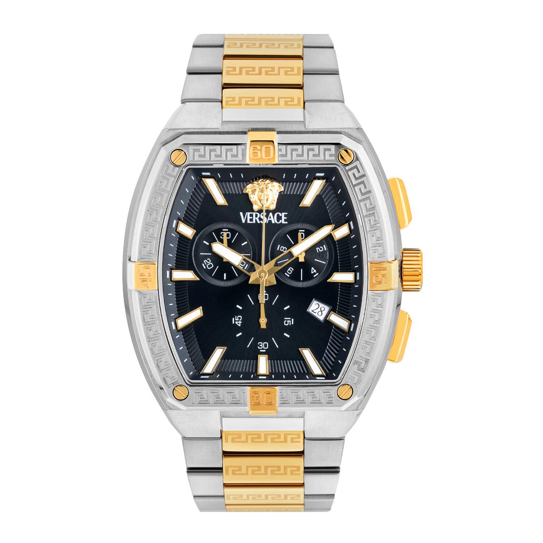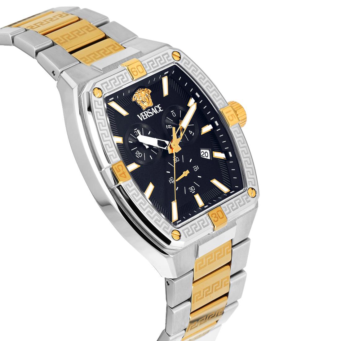 This Versace watch features a sleek black rectangular dial, measuring 44 x 54.3 mm, for a bold and modern look. The analog display provides accurate timekeeping while adding a touch of sophistication to any outfit. Trust in the quality and style of Versace, a leader in luxury timepieces.