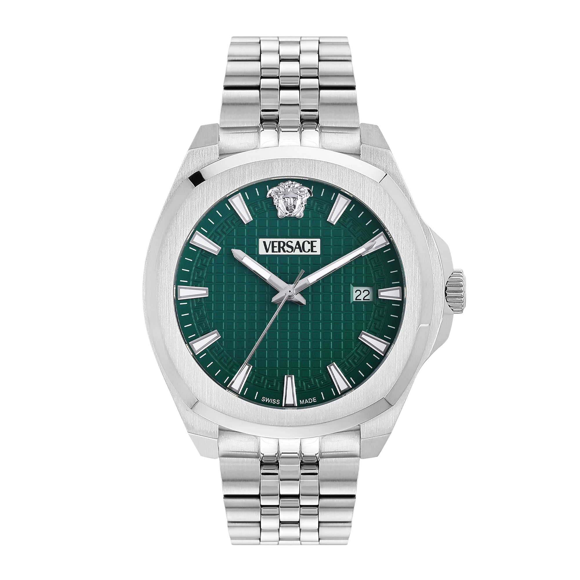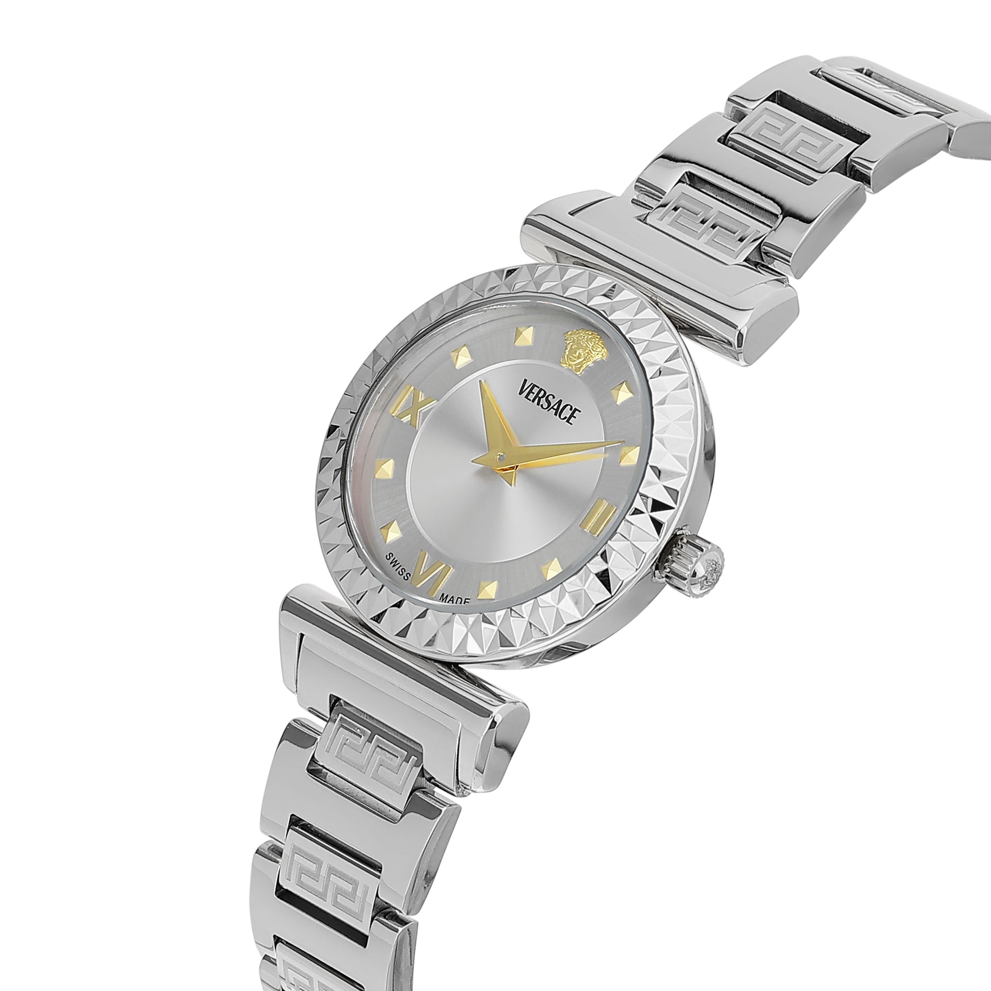 Versace Mini Vanity Rest. 27 mm Silver Dial Women Analog Watch- VEGFA0325 Discover refined elegance with this Versace Mini Vanity timepiece, expertly scaled at 27mm for the modern woman who values proportionate sophistication. The luminous silver dial radiates understated glamour, complemented by a precise three-hand movement that prioritizes legibility and reliability. This analog watch showcases Versace's mastery of delicate design without compromising on quality craftsmanship. The compact case sits gracefully on the wrist, offering versatility across casual and formal settings alike. An exquisite choice for the discerning woman seeking a luxury timepiece that balances Italian heritage with contemporary femininity—a timeless accessory that elevates any ensemble with quiet confidence.