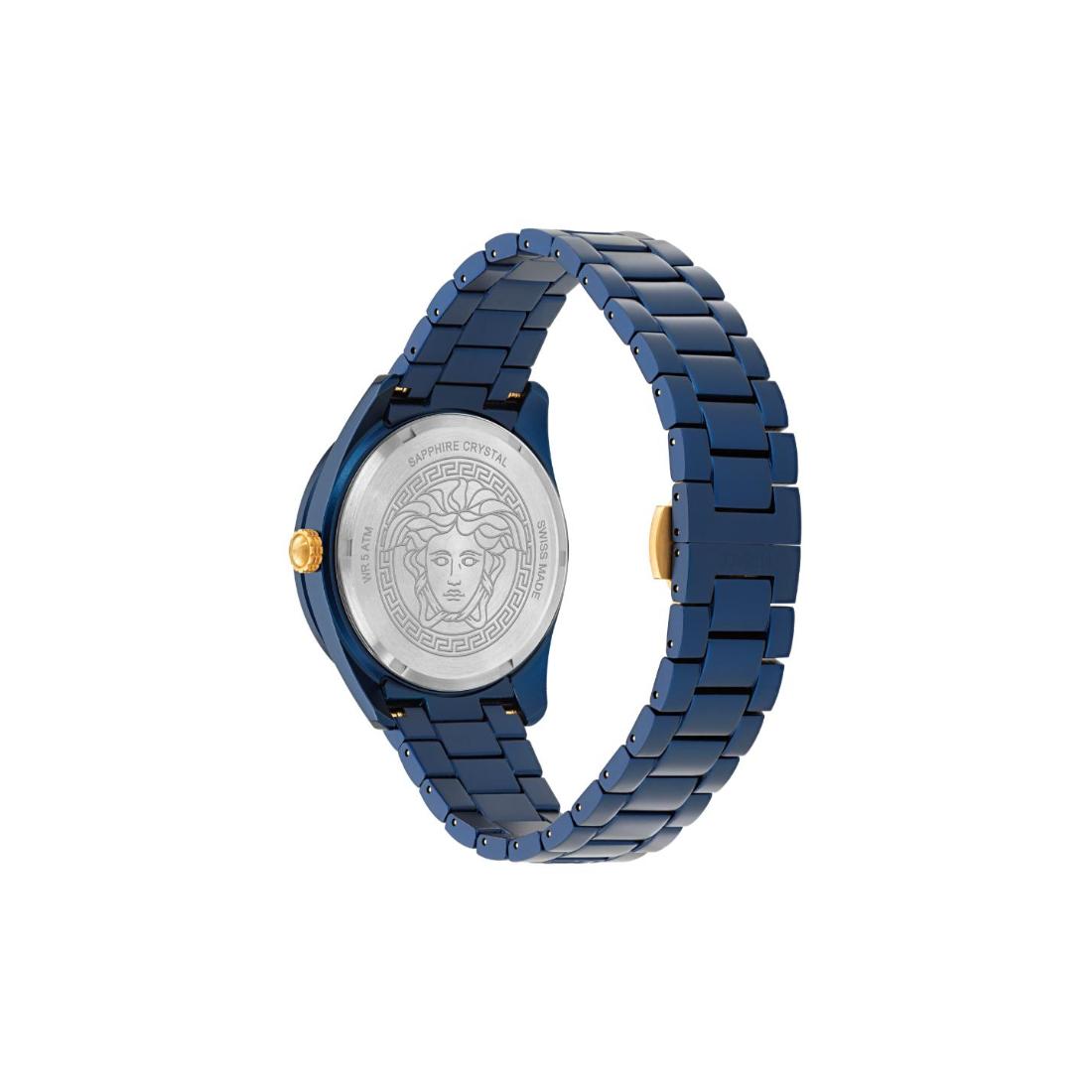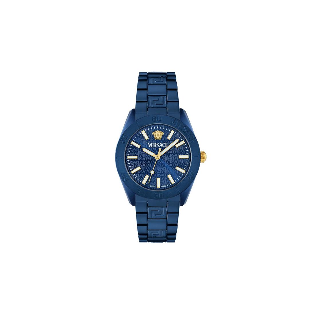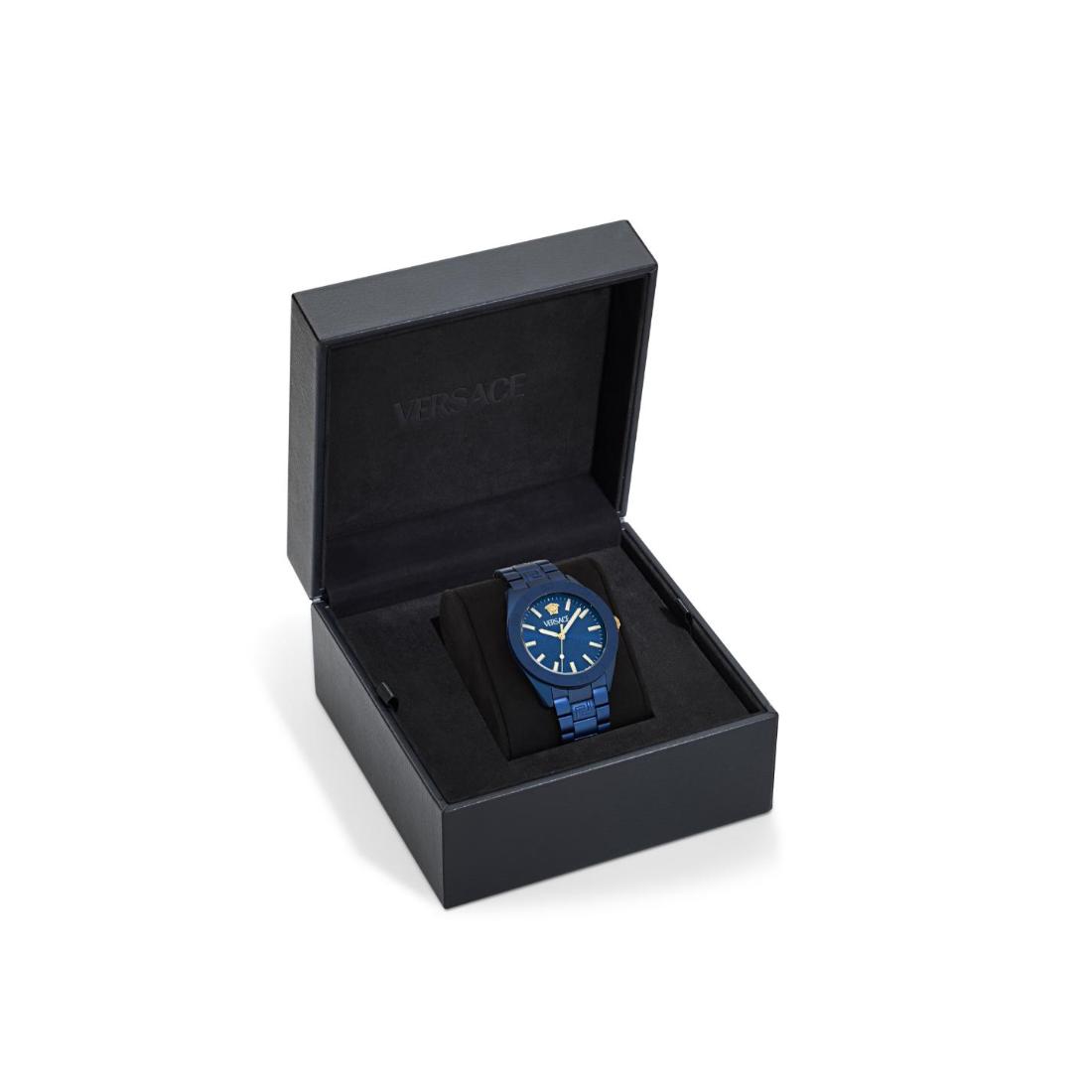 The Versace V-Dome men's watch features a refined 42 mm case paired with a deep blue dial, offering precise analog functionality combined with elegant design. Engineered for reliable timekeeping and sophisticated style, this timepiece exemplifies Versace’s commitment to luxury and contemporary masculinity.