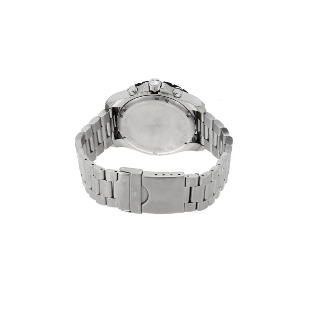 The Victorinox Swiss Made Maverick men's watch features a 43 mm stainless steel case with a silver dial, combining robust construction with precise analog timekeeping. Crafted with Swiss reliability, this timepiece offers durability and a refined design suitable for both professional and casual settings. Its balanced proportions and expert engineering make it a versatile choice for the modern man.