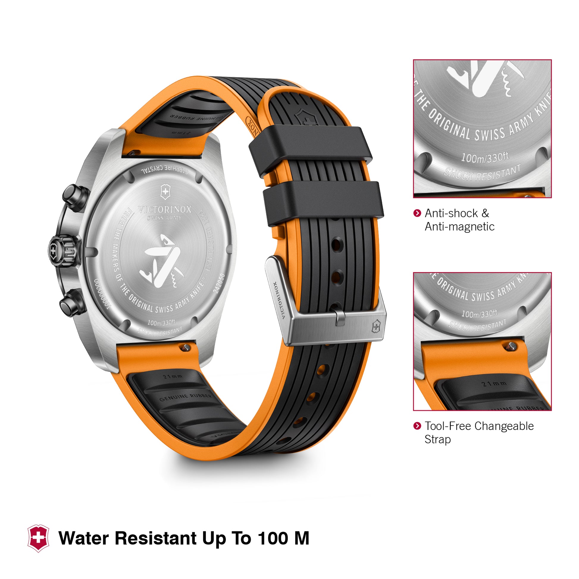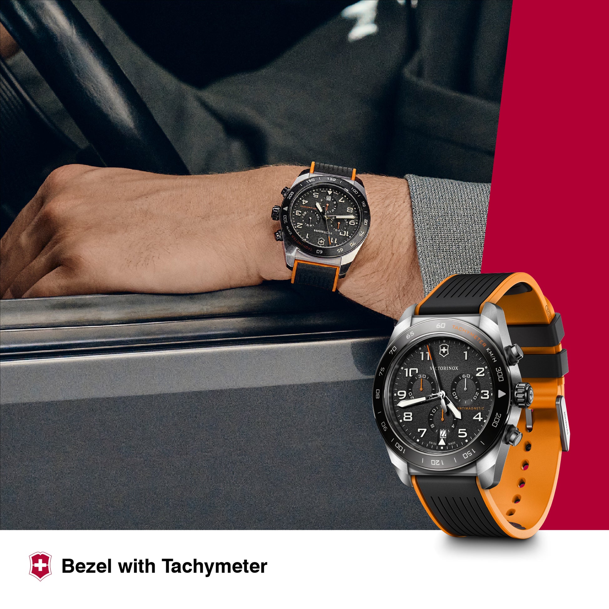 Discover a timepiece with streamlined good looks and uncompromising functionality The Swiss Army Chronograph Leather excels in all capacities; speed, distance, time and exacting precision Distinguished by its dependable technicality and resilience, it’s an intelligent choice for athletes, pilots or intrepid global travellers Keep it close and push your limits